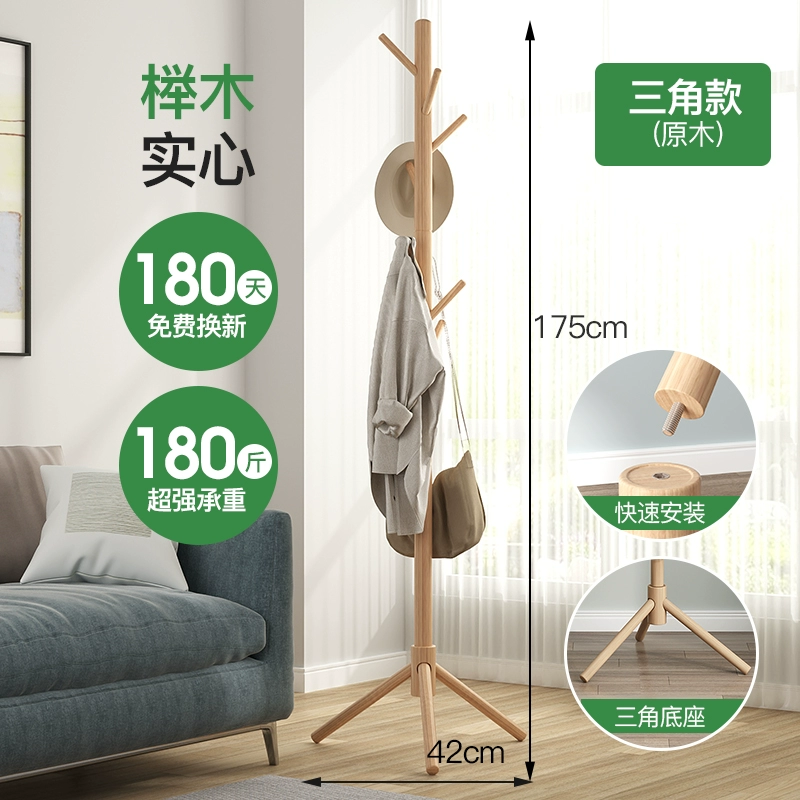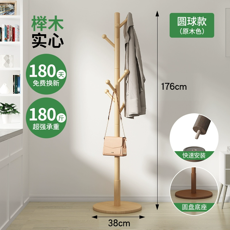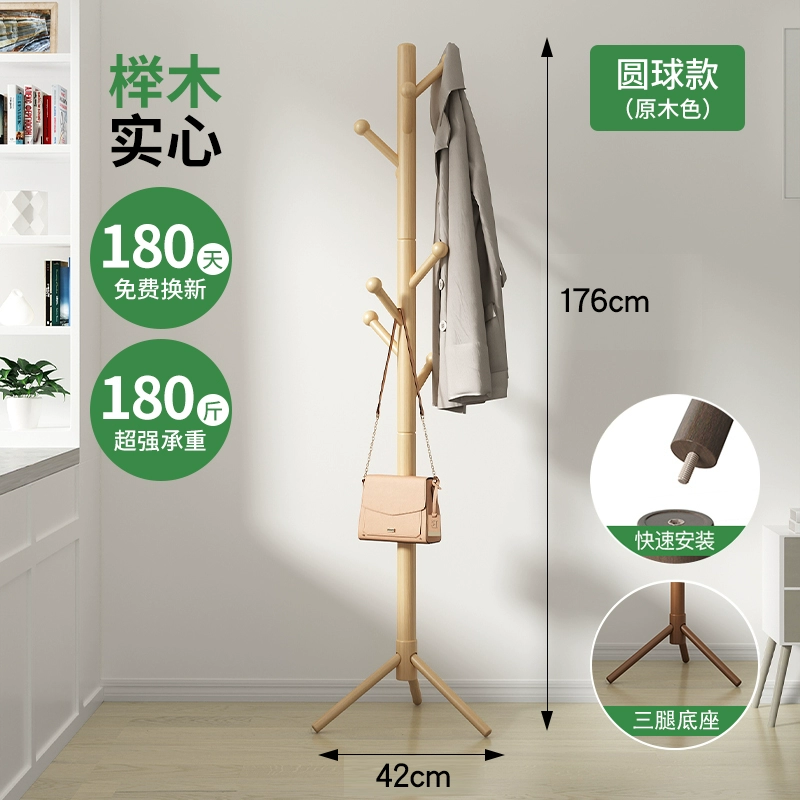 Solid wood clothes hanger floor-standing vertical coat rack beech wood clothes hanger Nordic simple clothes rack single pole living room bedroom