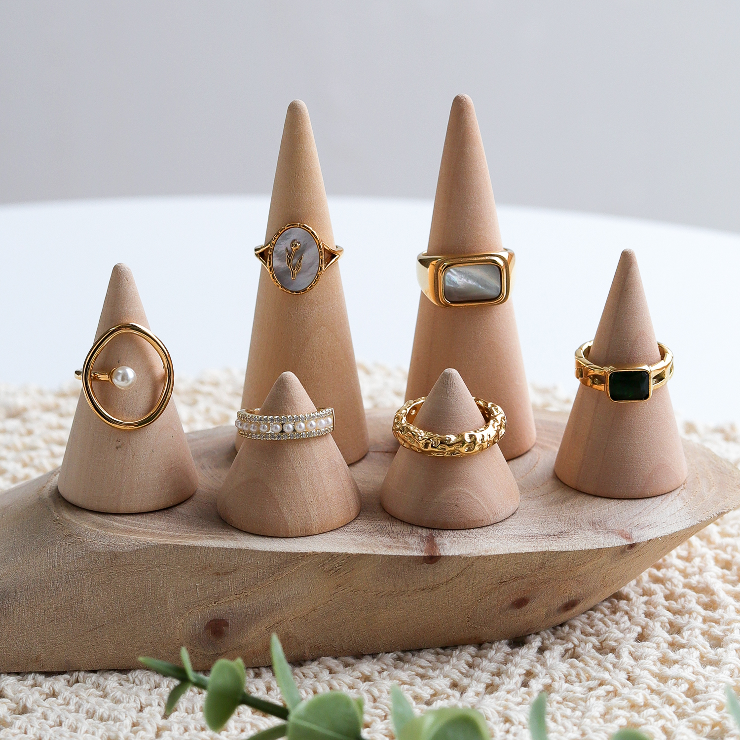 | nameOriginal | Solid wood cone jewelry jewelry store display ring display rack ring storage photography pose props ornaments. |