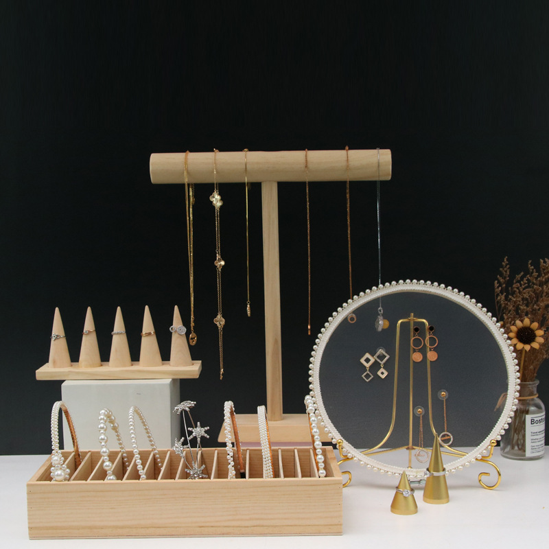 Solid Wood Creative Jewelry Display Props Earrings Rack Storage Bracelet Necklace Display Jewelry Rack Set