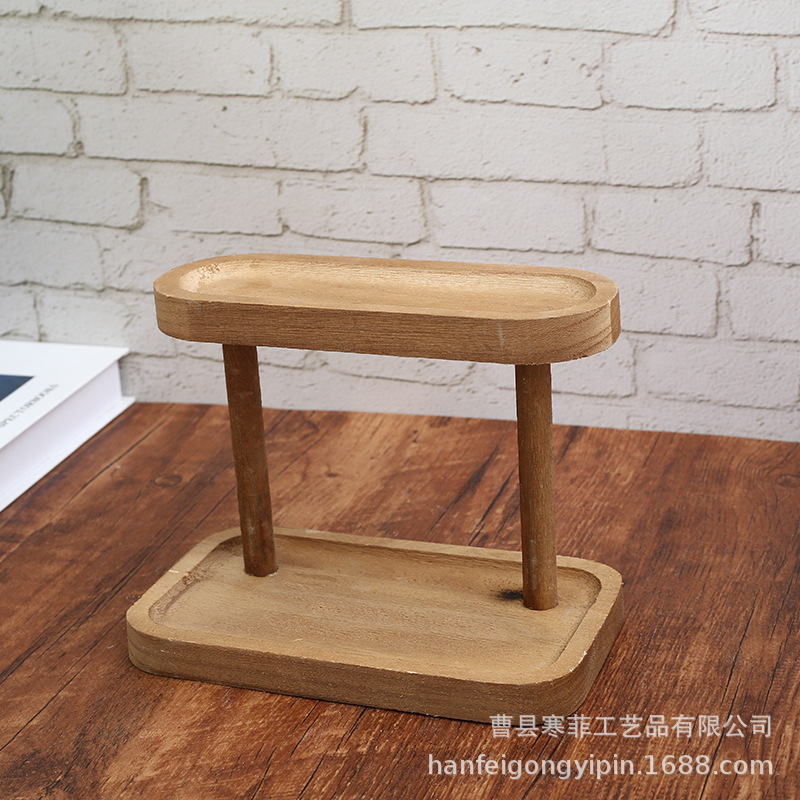 Solid wood double-layer storage rack jewelry rack desktop display rack jewelry display rack hallway key rack ins storage rack