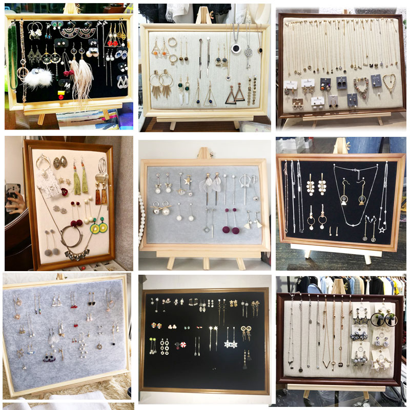 | nameOriginal | Solid Wood Earrings Storage Rack Stall Jewelry Display Board Home Photo Frame Wall Necklace Earrings Rack Earrings Props |
