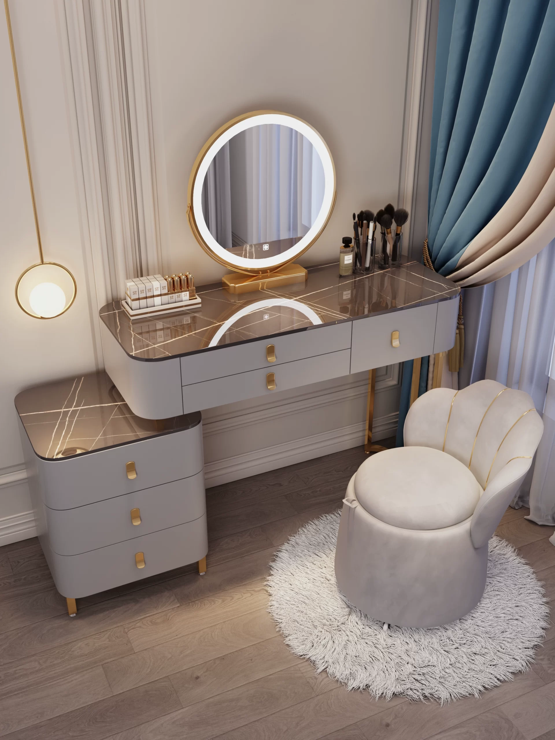 Solid wood high-end Nordic dressing table storage cabinet slate