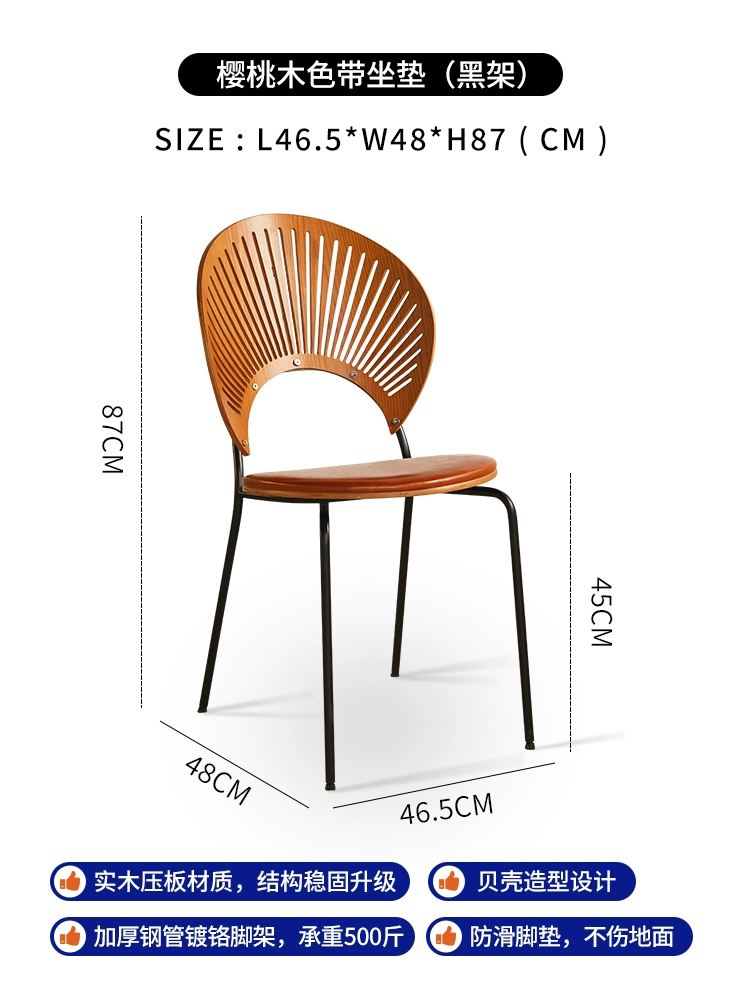 Solid wood home backrest, second-hand tea table, high-end dining chair