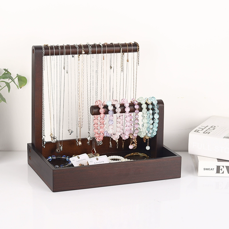 Solid wood household jewelry tray storage bracelet display rack desktop hanging necklace rack watch rack tray jewelry rack