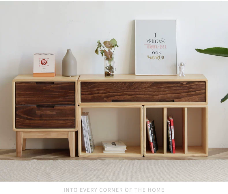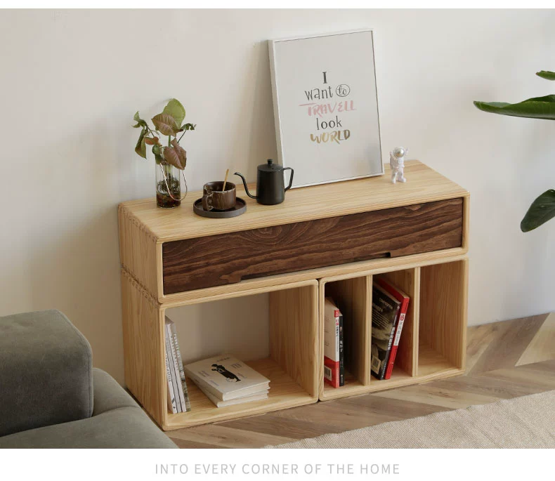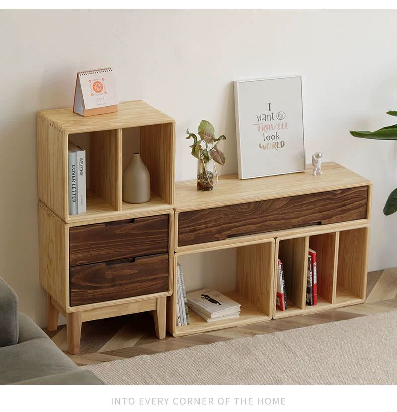 Solid wood lattice cabinet free combination storage cabinet with door storage rack modern simple storage cabinet floor-standing bookshelf low cabinet