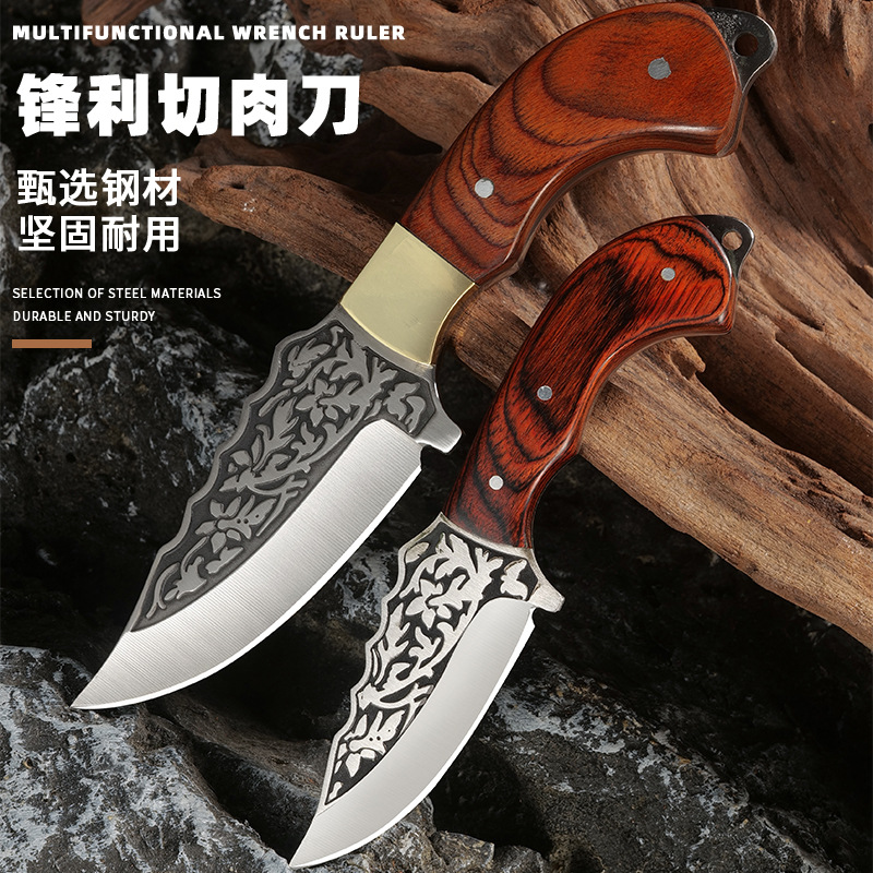 | nameOriginal | Solid Wood Meat Cutter Sharp Stainless Steel Colorful Wooden Knife with Leather Case Portable Knife with Curved Handle |