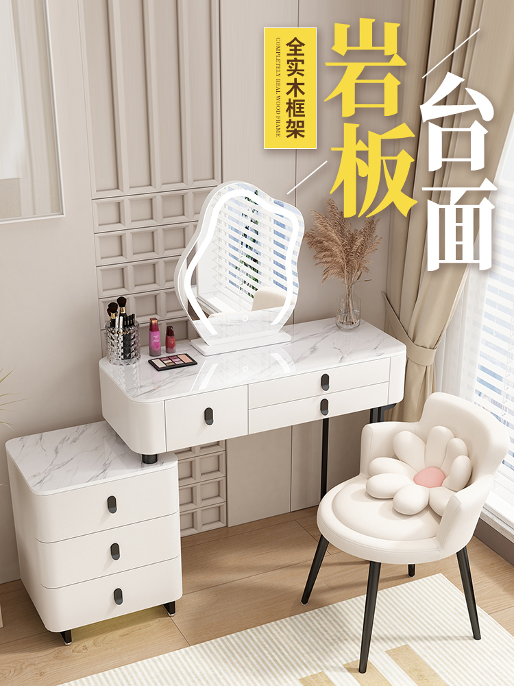 Solid wood stone vanity dressing table bedroom modern simple light luxury high-end small apartment makeup table storage cabinet integrated