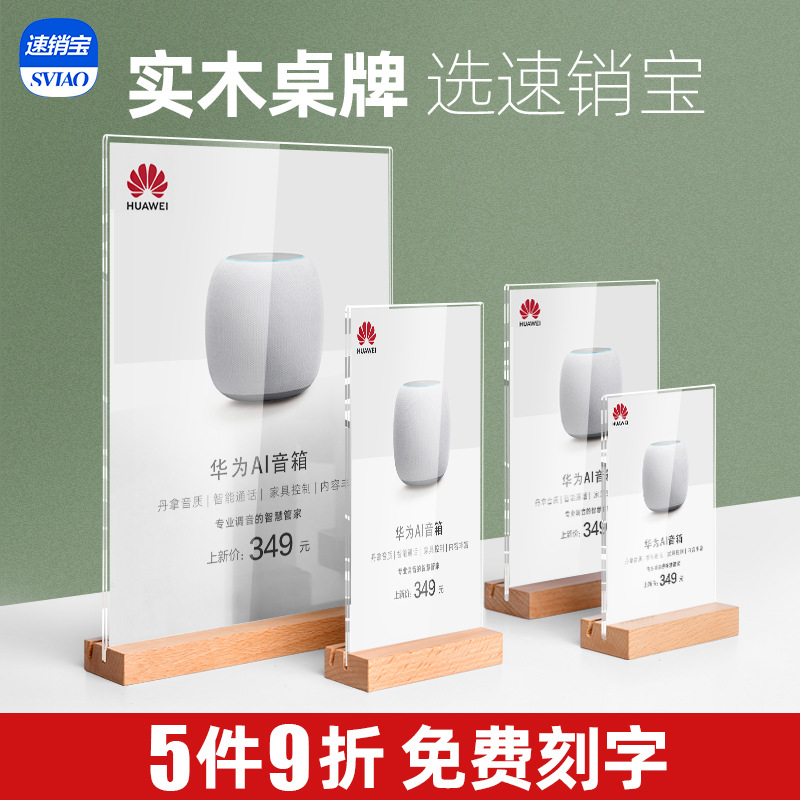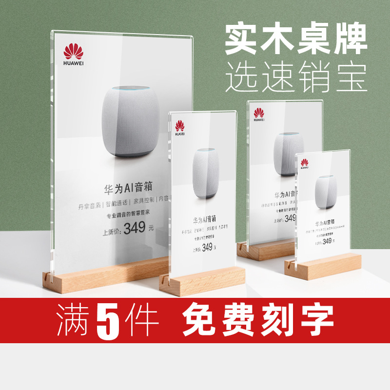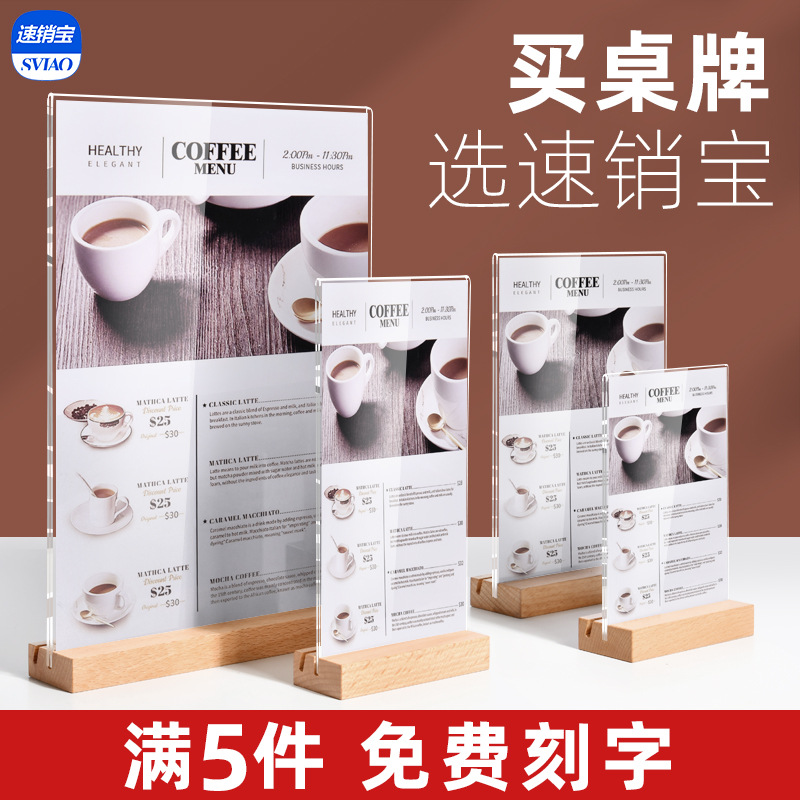 Solid wood standing wooden dining table card menu display card milk tea shop price list display card dining card display stand menu
