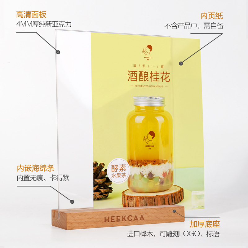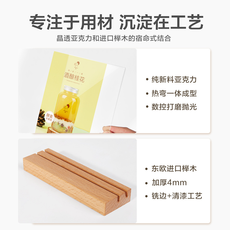 | nameOriginal | Solid wood standing wooden dining table card menu display card milk tea shop price list display card dining card display stand menu |