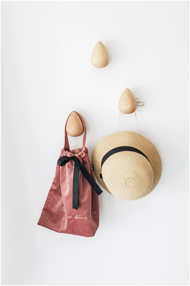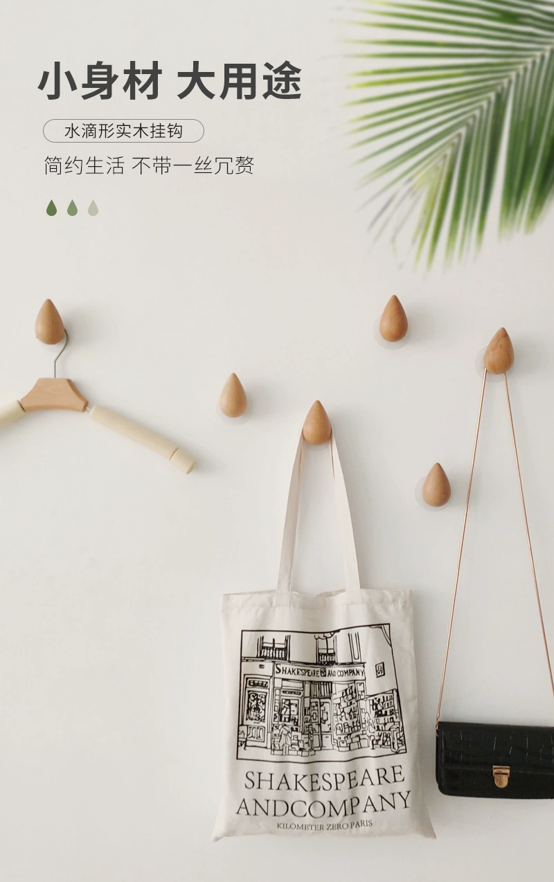 Solid wood water drop coat hooks wall hanging no punching rain drop creative clothes hooks viscose single entrance wall hanging