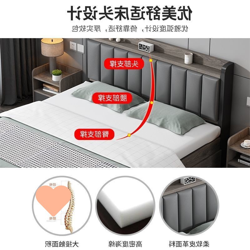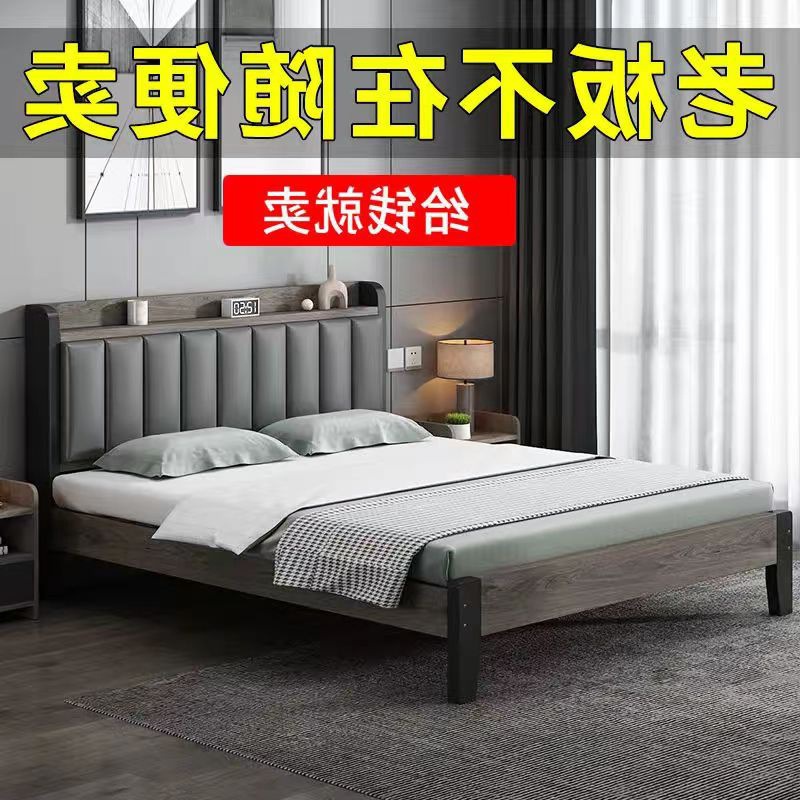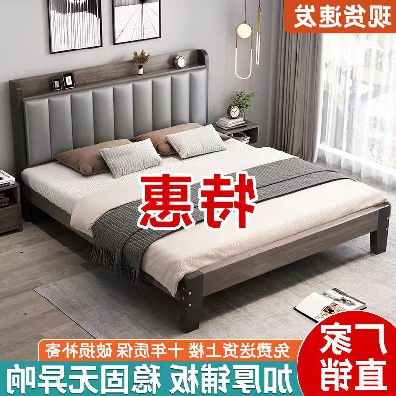 Solid Wooden Bed 1.5 m Household Bedroom 1.8 m Double Bed Small Apartment 1.2 Rental House Simple Single Bed Adult