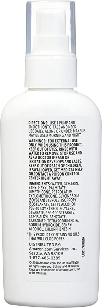 Amazon Brand – Solimo Oil-free Facial Moisturizer for Sensitive Skin, 4 Fluid Ounce, 1 pack, Unscented, white