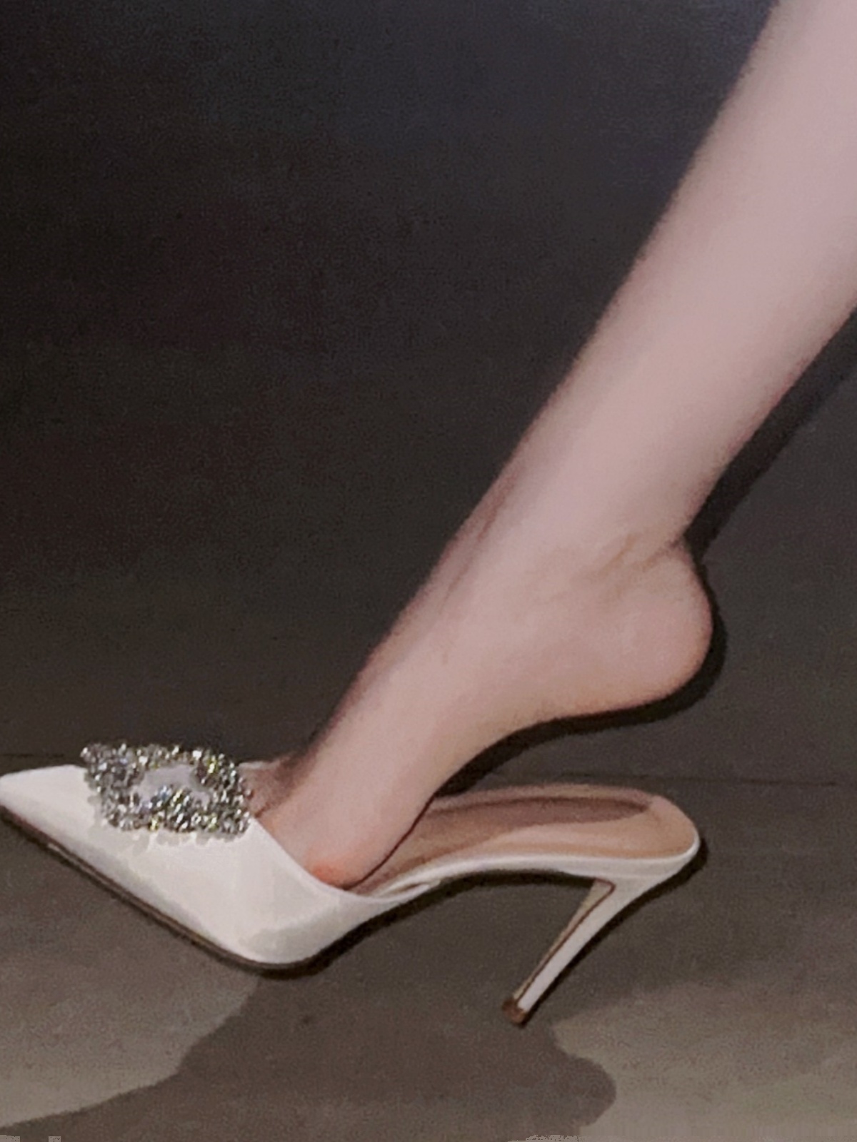 | nameOriginal | Son Ji-hye rhinestone point square buckle shallow mouth thin heel sandals |