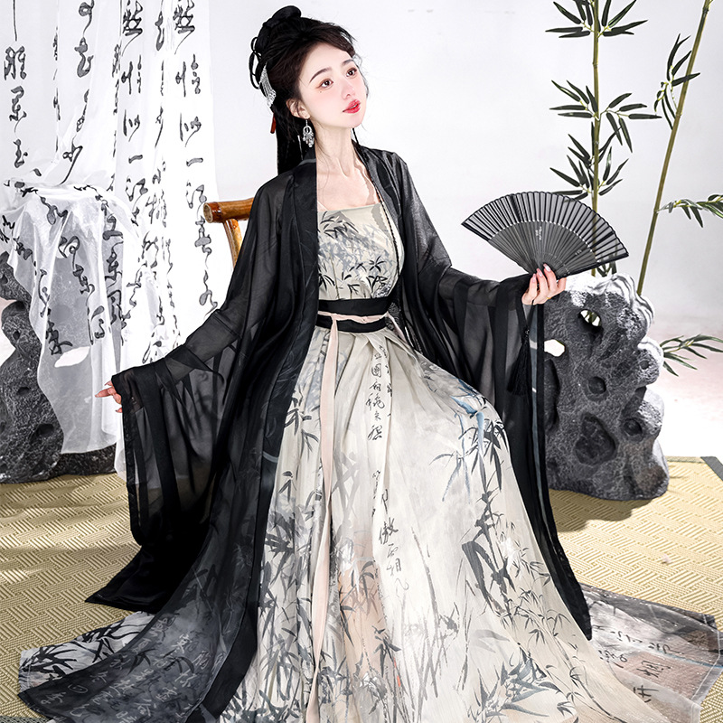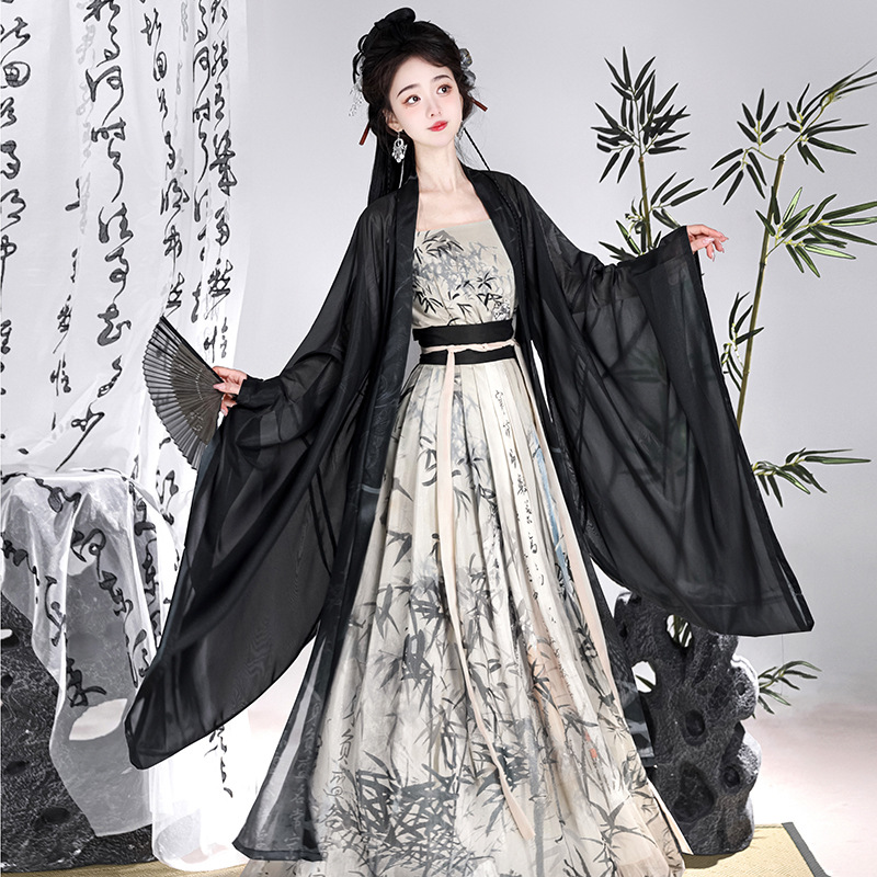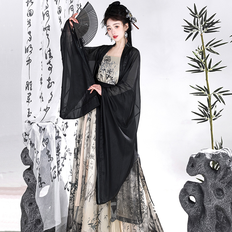 Song-made Cao County Hanfu women's ancient costume Black large sleeve shirt waist improved Han element Chinese style Daily spring and summer