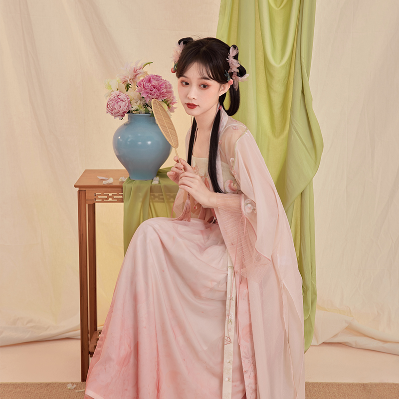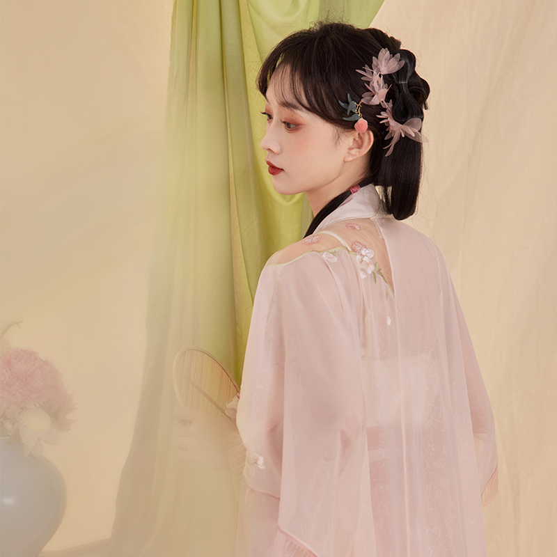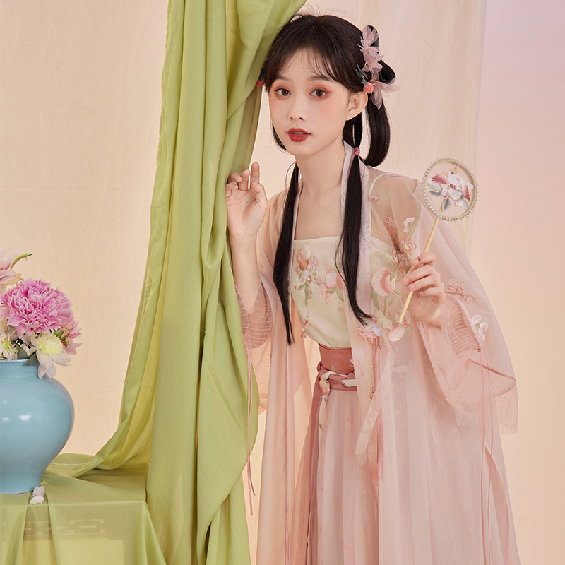 Song-made Hanfu Peach Early Summer Embroidered Sling-breasted Long Shirt One-piece Printed Pleated Skirt for Summer
