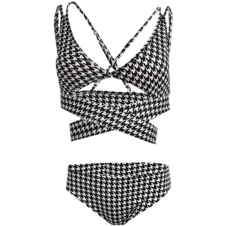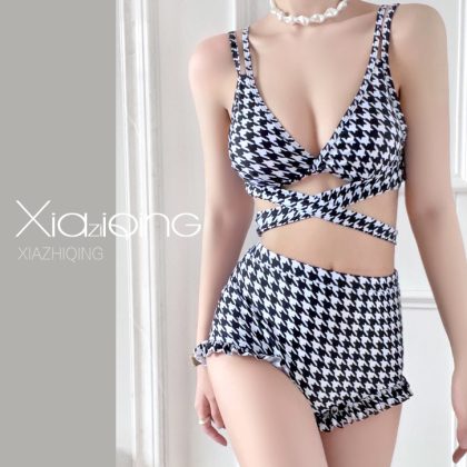 Song Zhiya Same Style Single That Is Hell Sexy Homemade Hot Spring Soaking High Waist Houndstooth Split Swimsuit Women’s Bikini