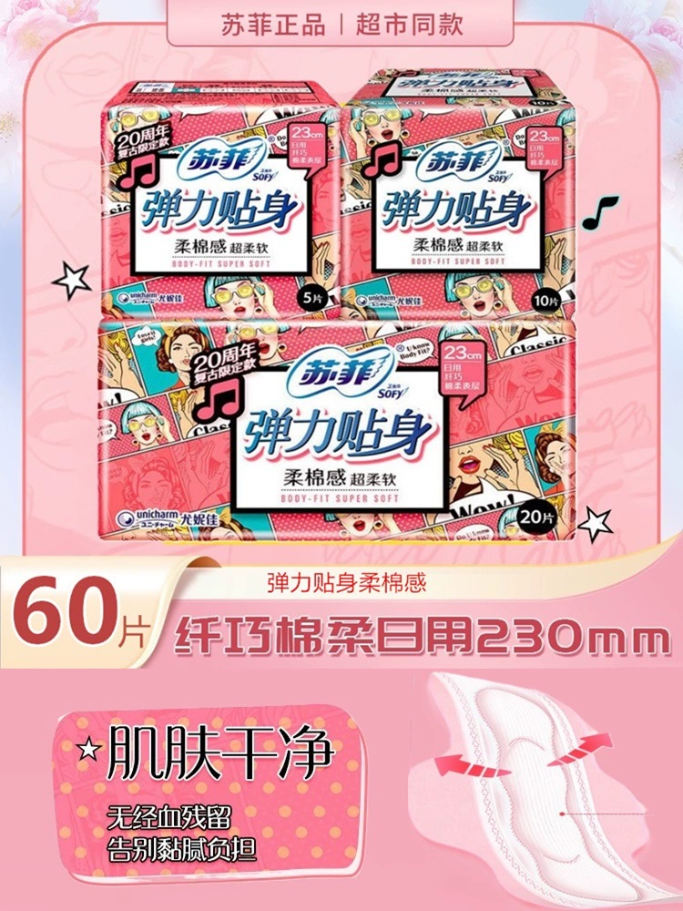 | nameOriginal | Sophie elastic close-fitting slim daily use 230mm 5 pieces/10 pieces/20 pieces skin-friendly cotton soft and skin-friendly night-use sanitary napkins |