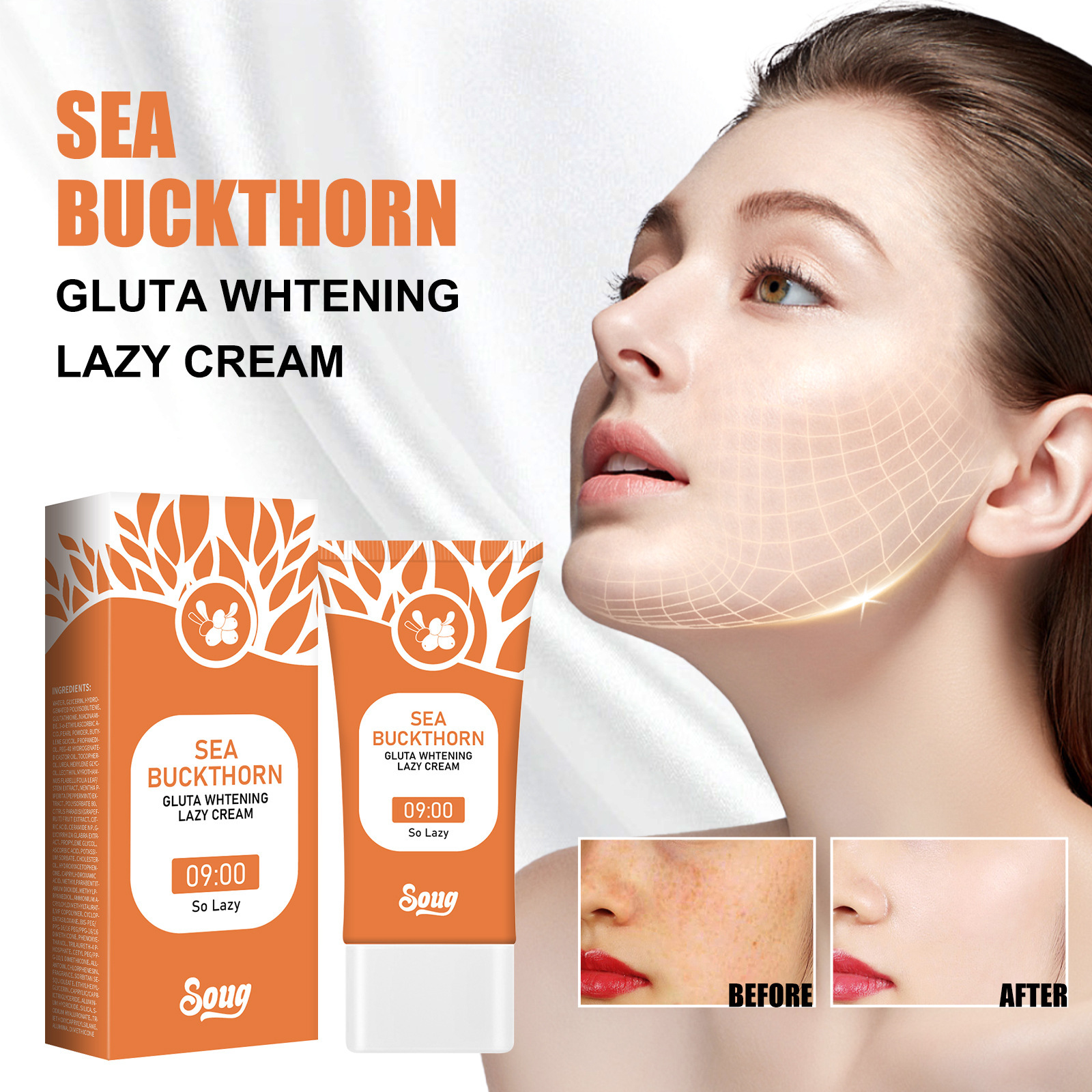 | nameOriginal | Soug sea buckthorn glutamic acid lazy skin cream moisturizing brightening repair damaged skin fade fine lines firming body |