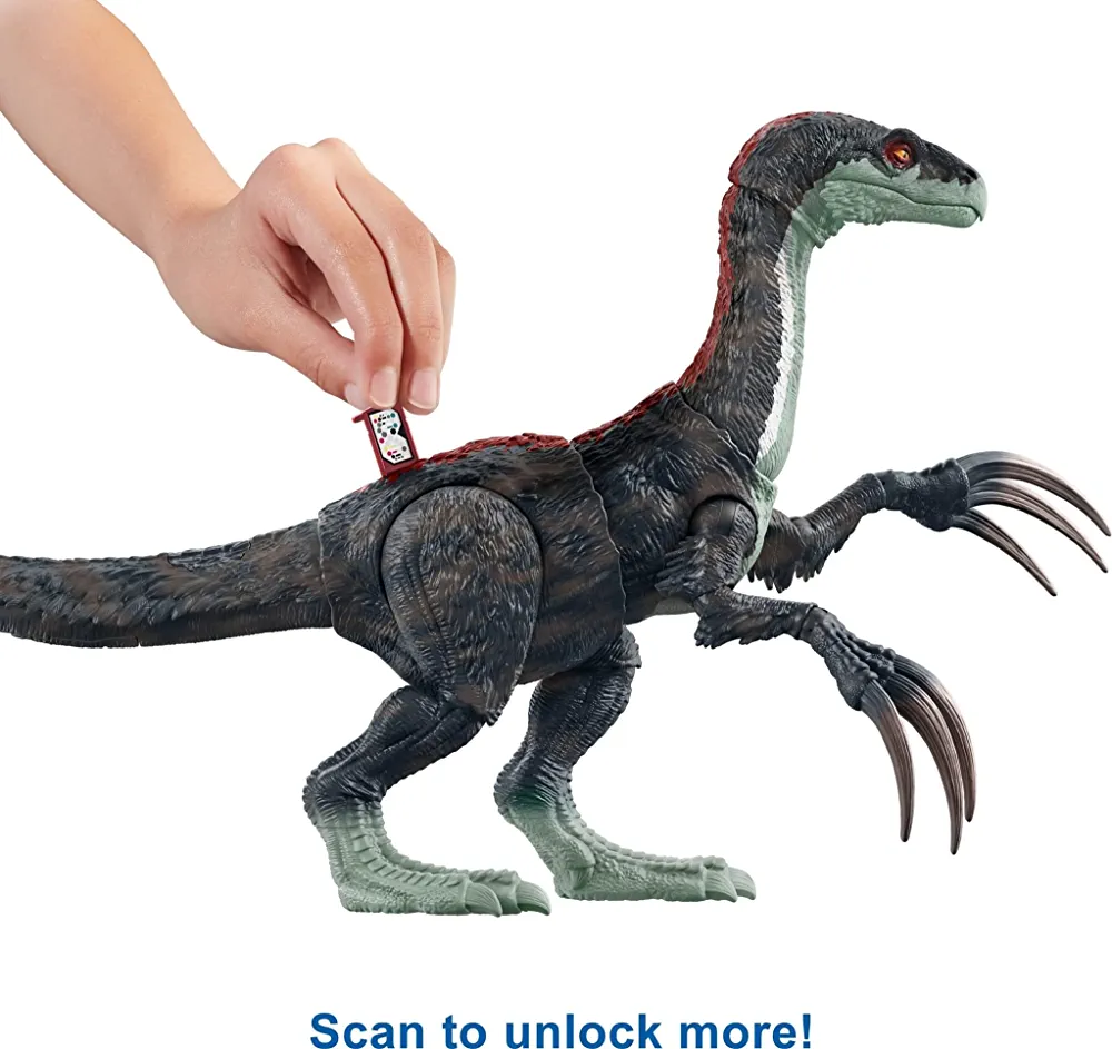 | descriptionOriginal | Side Swiped! Watch out for the intimidating side-to-side slashing motion, augmented by aggressive chomping action and realistic sounds! The Sound Slashin' Therizinosaurus dinosaur brings home terror and thrills! Based on the popular dinosaur in Jurassic World Dominion, this action figure has HUGE claws for executing super side-slashing attacks! Epic sound effects capture the ferocity of the dinosaur, accompanied by a lunging chomp action! Activate the attack motion and roars, if you dare! Augment the Reality of this fearsome dinosaur by scanning the hidden DNA code with any smart device to unlock AR experiences in the free Jurassic World Facts app. Smart device not included. Adventure Awaits! With impressive sound and attack motions, this adds to any dinosaur lover's collection! Look for all the figures inspired by Jurassic World Dominion. Each sold separately and subject to availability. |