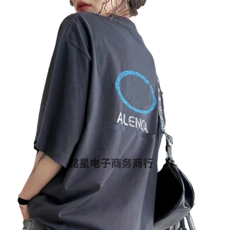 | nameOriginal | Source direct supply high version 24ssB new men's and women's classic logo printing fraying old short sleeve T-shirt |