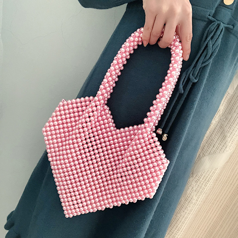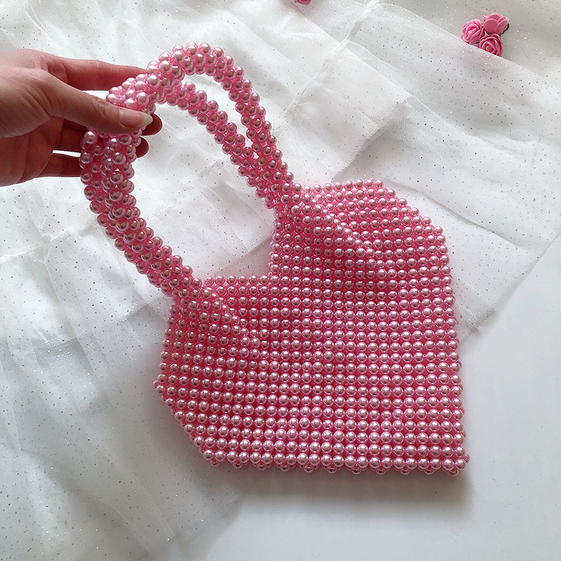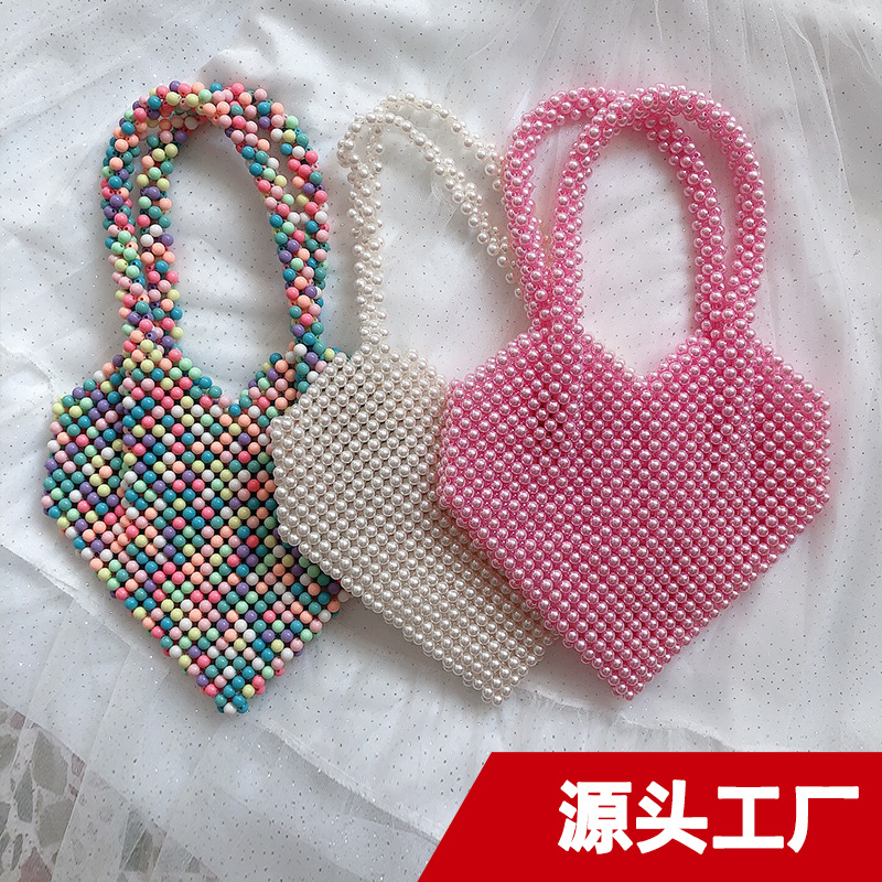 Source Factory Pearl Peach Heart Beaded Bag Portable Love Bag Handmade Beaded Bag Fairy Heart-shaped Bag for Women