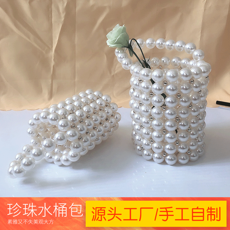 | nameOriginal | Source Factory Pearl Round Pen Container Bag Handmade Beaded Round Bucket Bag Shoulder Crossbody Bag Women's Internet Celebrity Same Style Bag |
