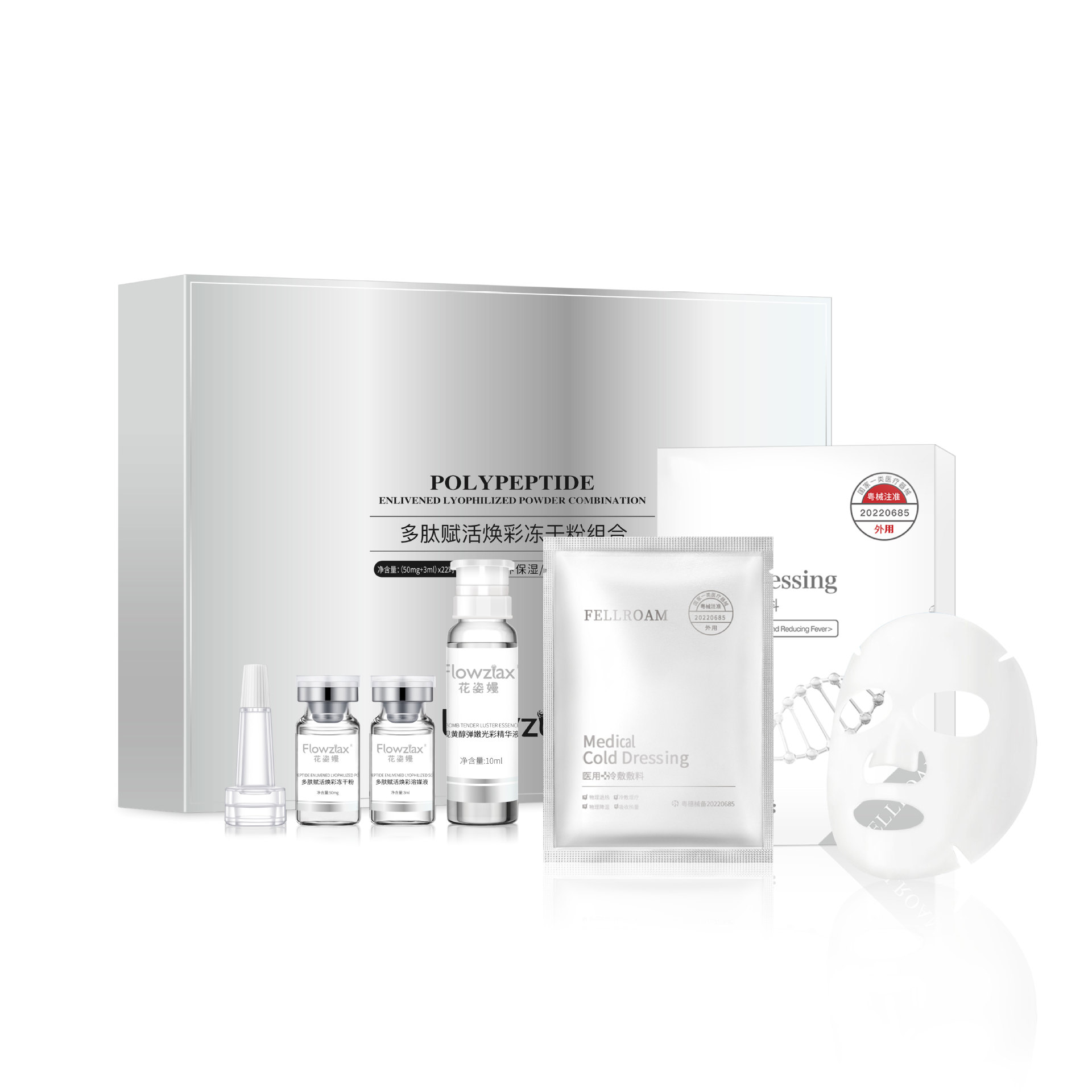 | nameOriginal | SOURCE manufacturer huaziqi polypeptide brightening freeze-dried powder set box + Hospital line cold compress mask sensitive skin repair Hospital line |