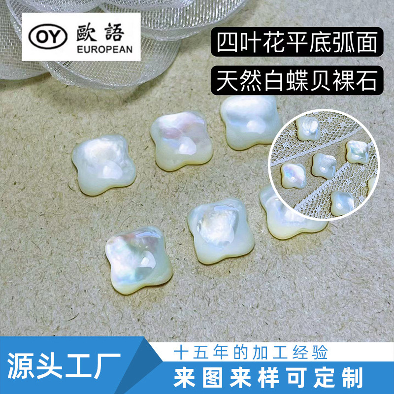 | nameOriginal | Source origin flat bottom arc surface four-leaf clover four-leaf flower naked stone natural white fritillary jewelry diy accessories wholesale |