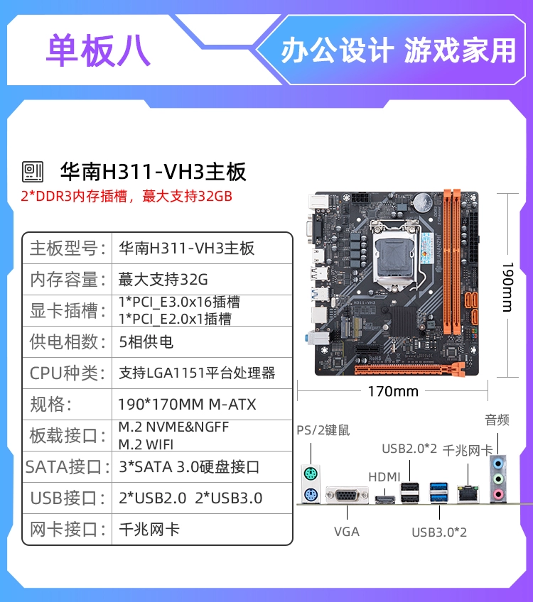 South China Gold Medal CPU Set H311 Computer Motherboard