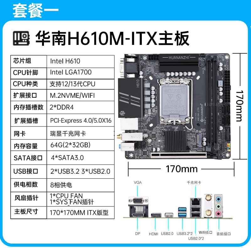 South China gold medal H610M-ITX motherboard desktop computer mini motherboard supports Core 12/13 generation i3i5i7