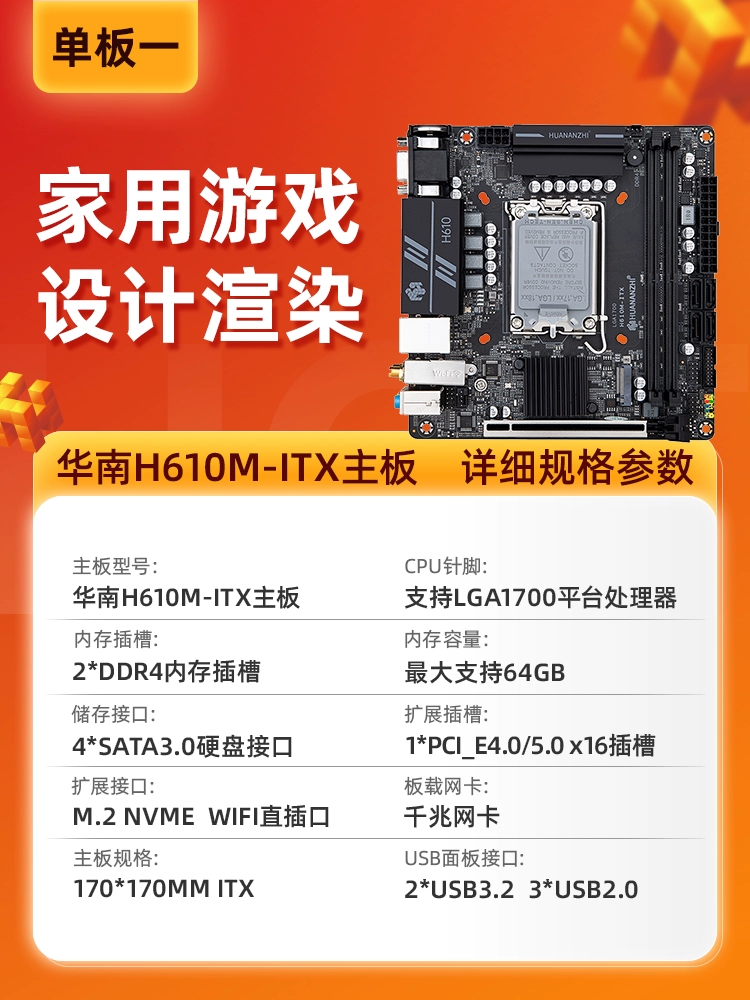 | nameOriginal | South China Gold Medal H610M-ITX motherboard desktop computer mini motherboard supports Core 12th/13th generation i3i5 |