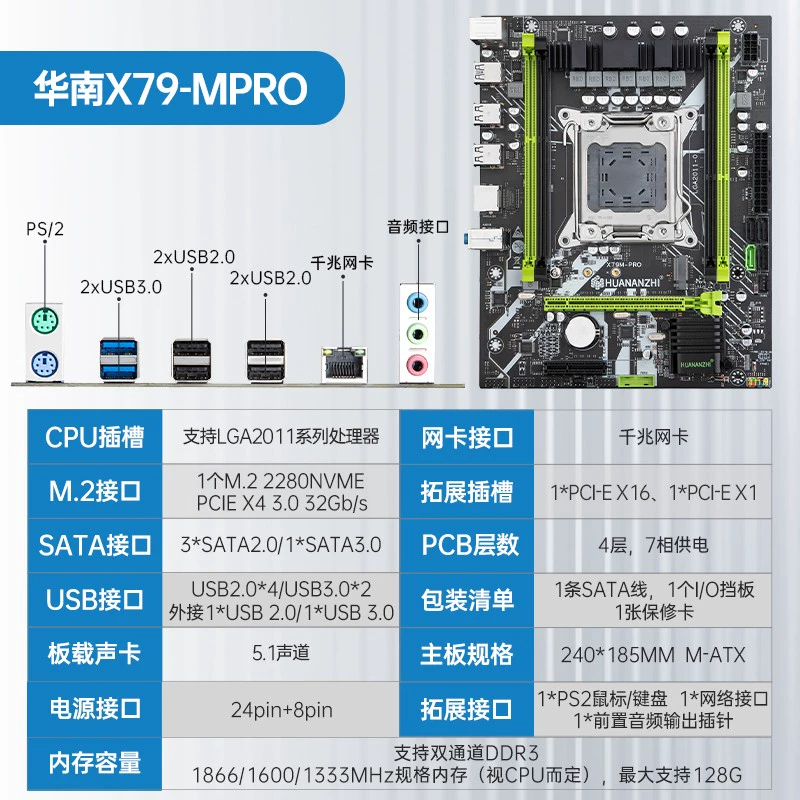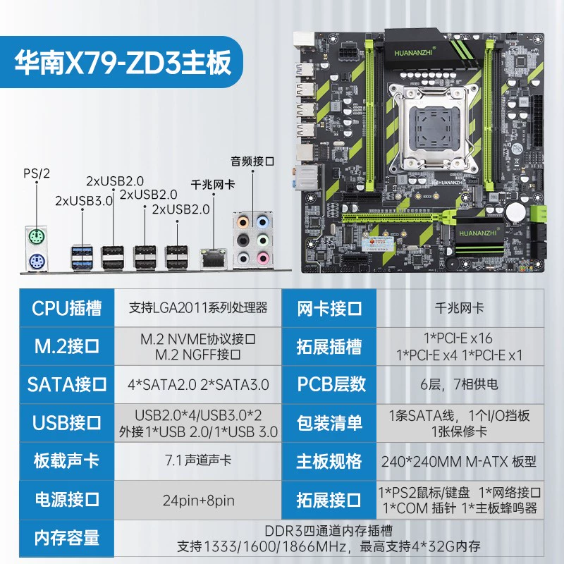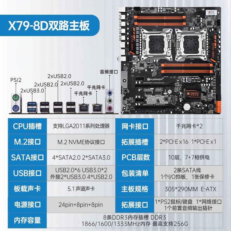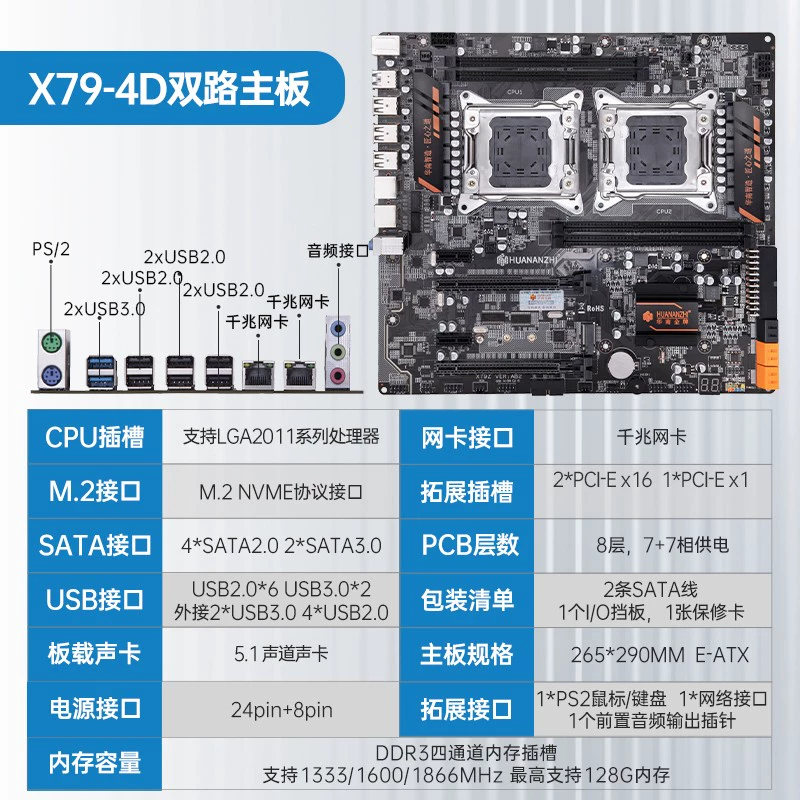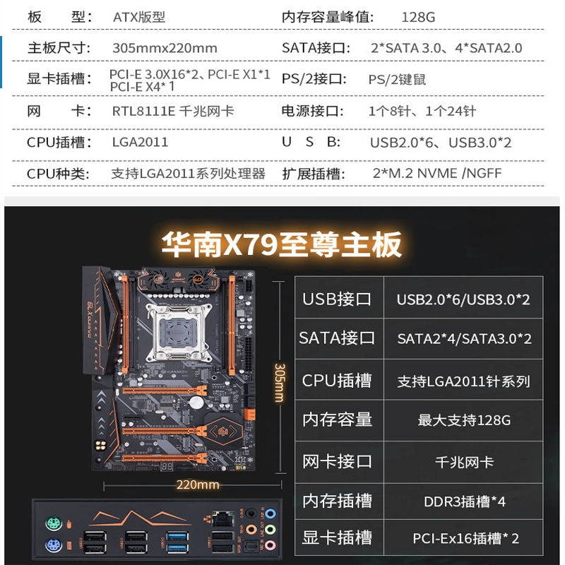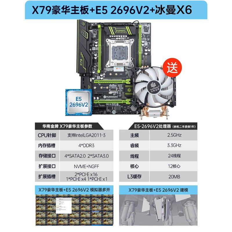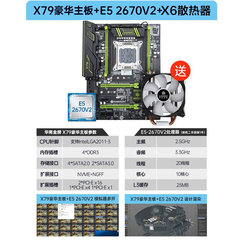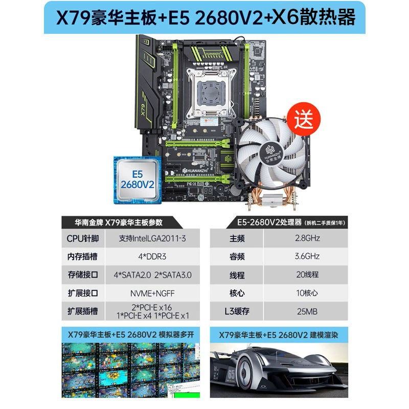South China Gold Medal X79 2011 E5 Desktop Motherboard CPU Set Dual Channel with 2680V2 2690V2