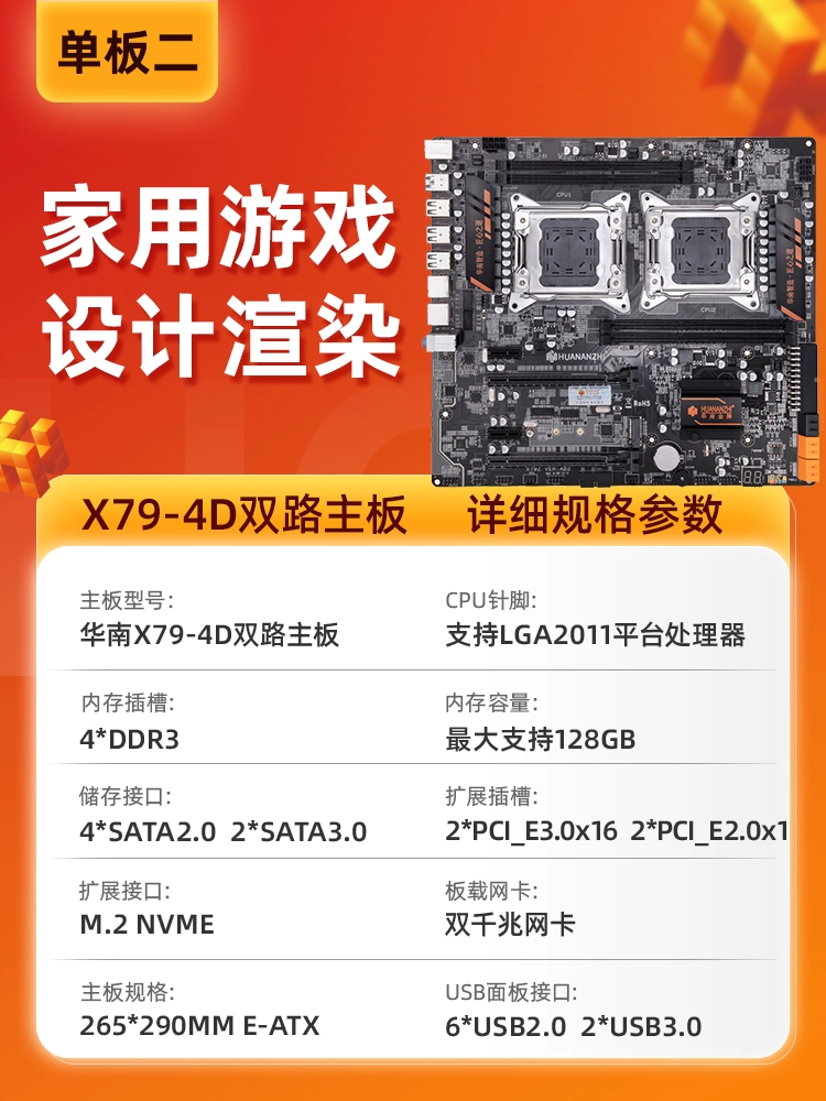 South China Gold Speed ​​X79 Double Road Motherboard CPU Set 2011 E5 game studio design rendering more open