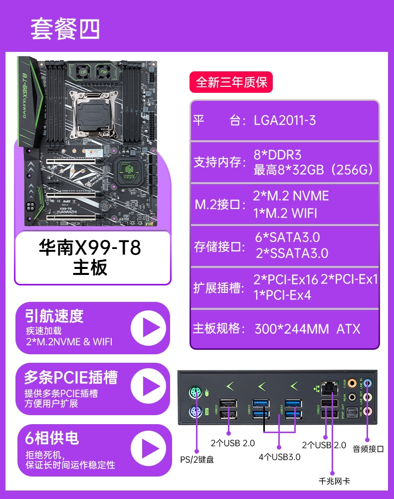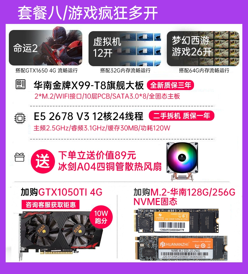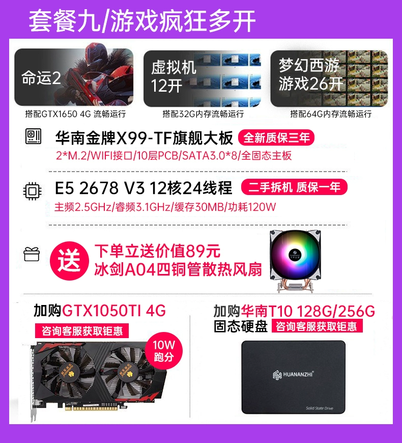 South China gold medal x99 desktop computer motherboard CPU set DDR3 memory game simulator multi-open 2678v3