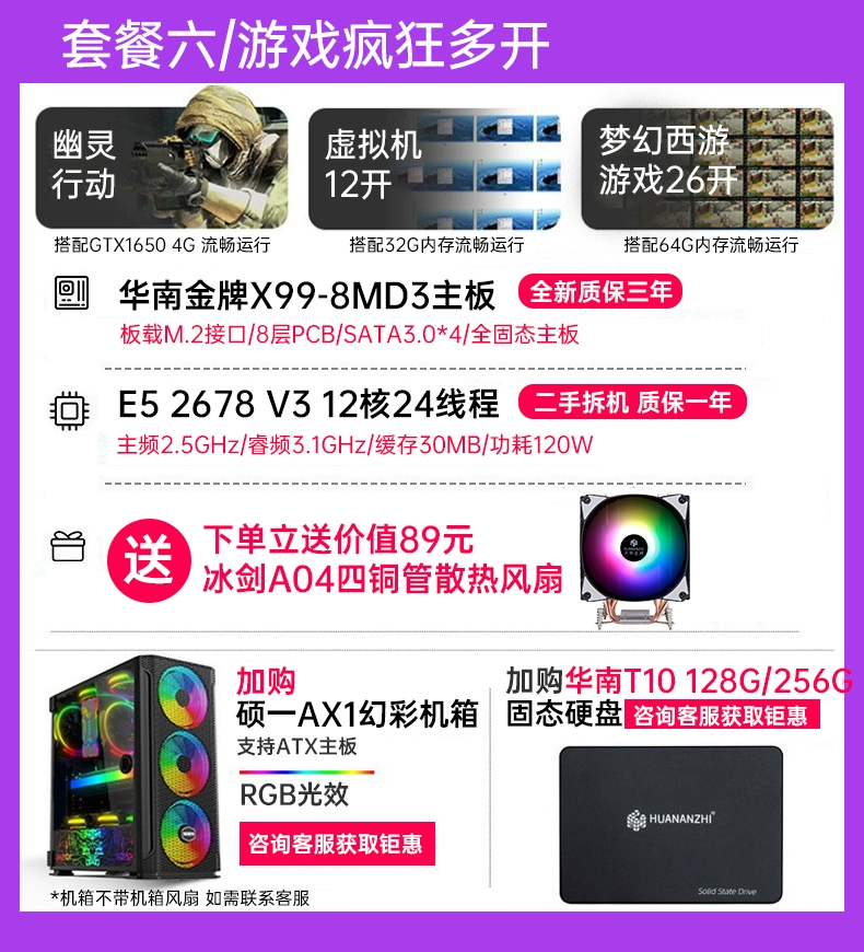 South China gold medal x99 desktop computer motherboard CPU set DDR3 memory game simulator 2678v3 more
