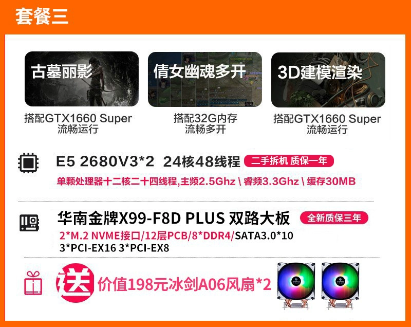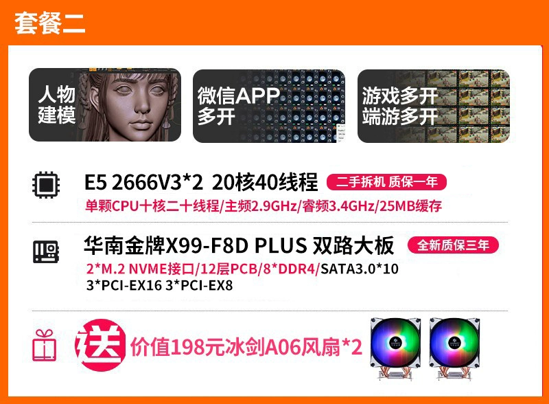 | nameOriginal | South China Gold Medal x99-F8DPLUS Dual-way Motherboard CPU Set Desktop Computer Server 2696v3 |