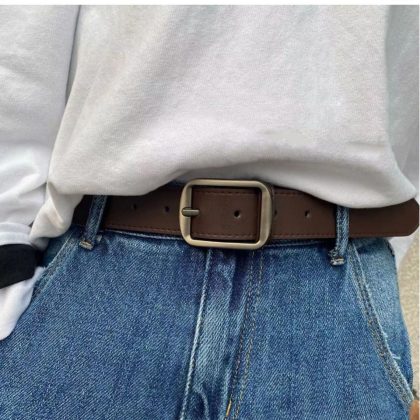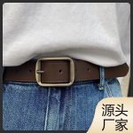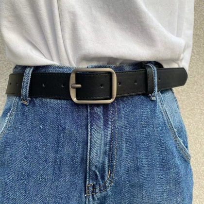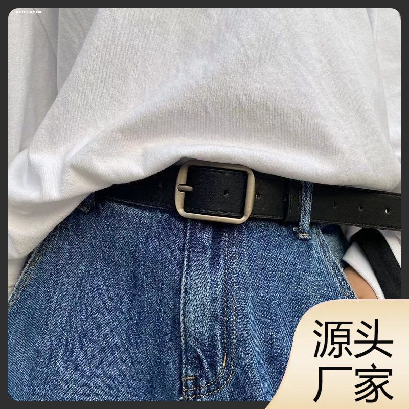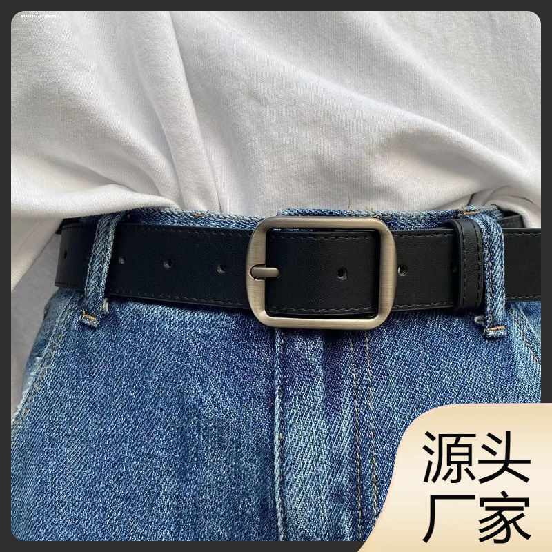 South Korea 2024 new belt square matte silver solid buckle black belt chic wind wide ladies fashion