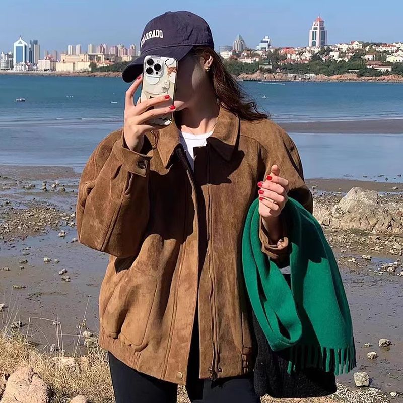 | nameOriginal | South Korea 2024 Spring and Autumn Vintage Maillard Lapel Loose All-match Billboard Coat Baseball Coat Women |