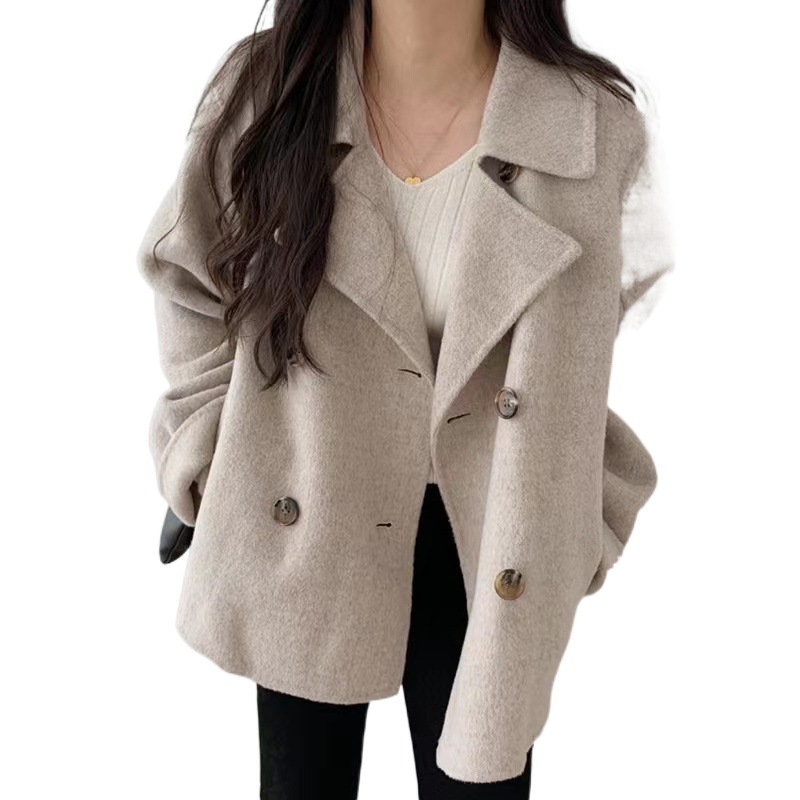 | nameOriginal | South Korea autumn and winter French elegant suit collar double breasted loose casual all-match long sleeve warm woolen coat |