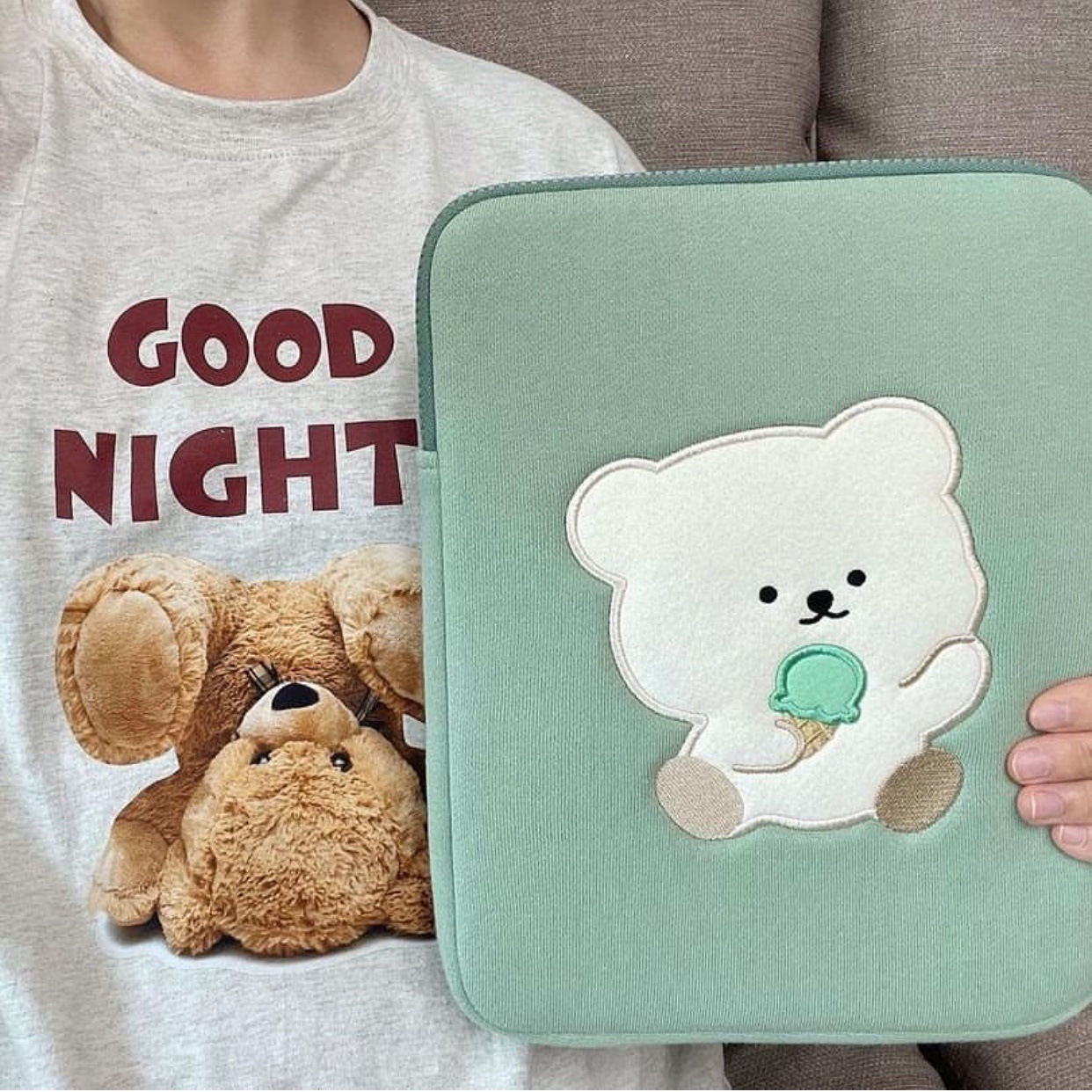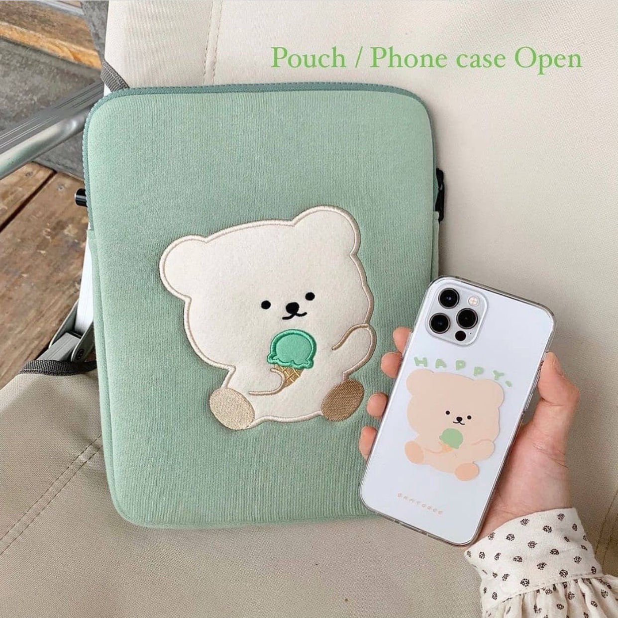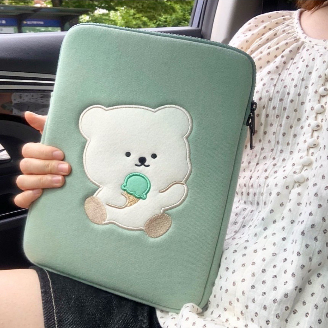 South Korea bamtoree ice cream green bear laptop tablet storage bag ins13 inch 15 inch 11