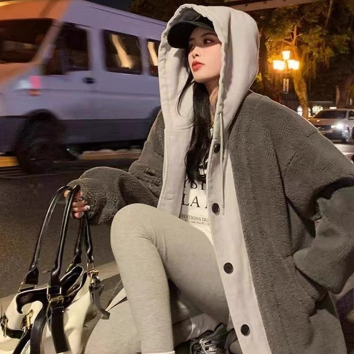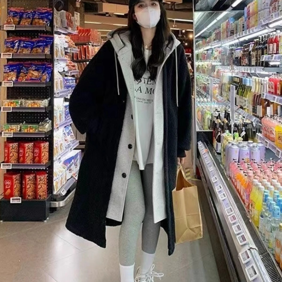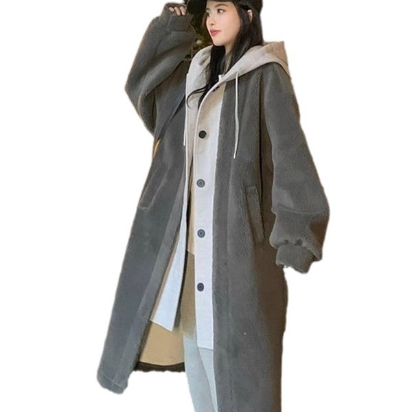 | nameOriginal | South Korea chic autumn and winter New long hoodie skirt coat lambswool all-match loose fashion coat ins fashion |