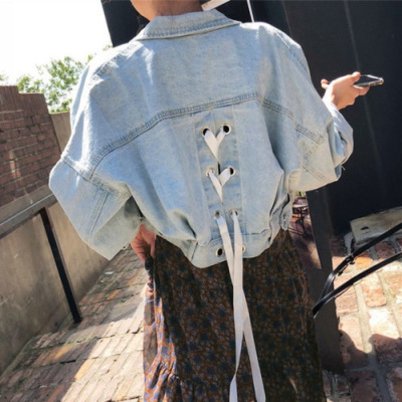 | nameOriginal | South Korea chic autumn back cross ribbon design lapel single-breasted high waist slimming Denim coat for women |