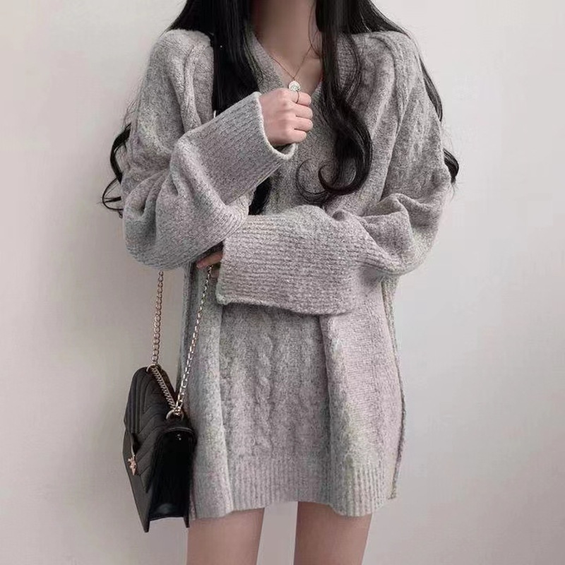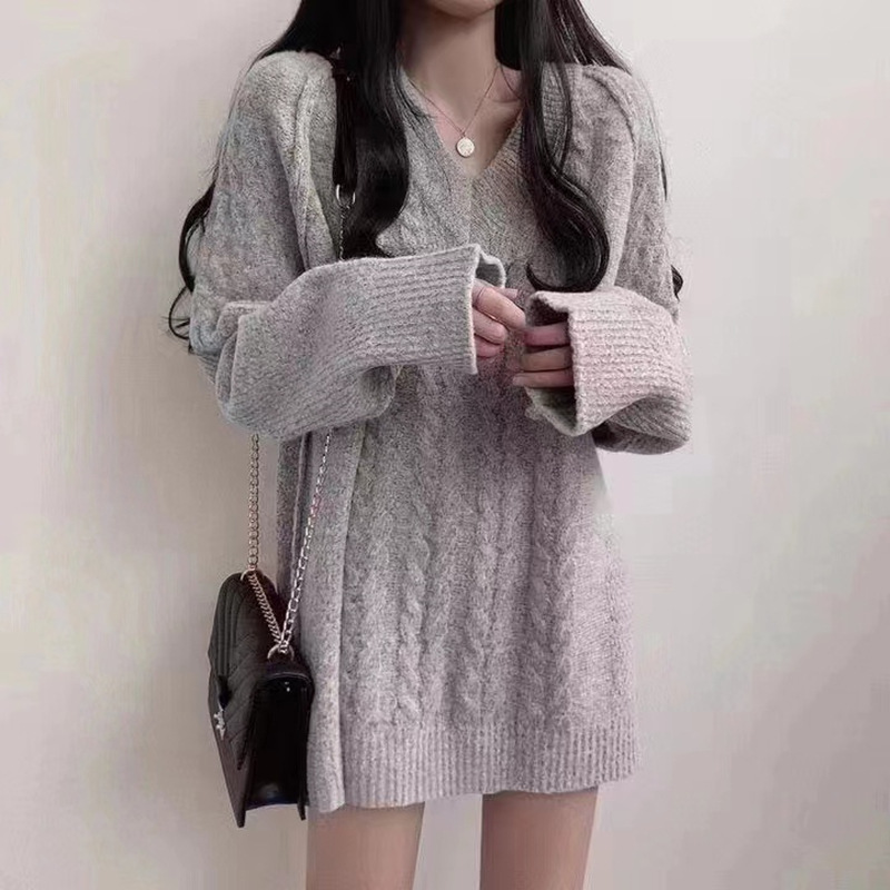 | nameOriginal | South Korea chic autumn mid-length twist pullover sweater dress Women's Western style retro solid color all-match sweater foreign trade |