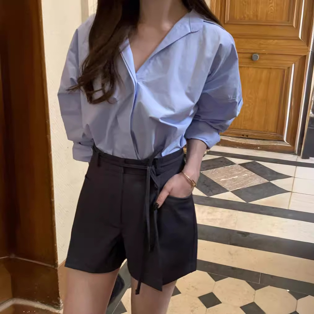 | nameOriginal | South Korea Chic Autumn New French Style Retro Simple Lapel Long Sleeve Shirt Women's Loose Lazy Style Casual Shirt |
