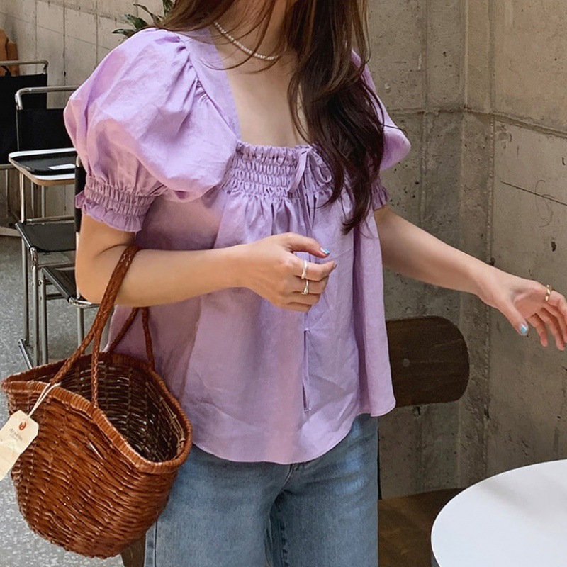| nameOriginal | South Korea Chic French Style Square Collar Lace-up Collarbone Pleated Loose All-match Puff Sleeve Shirt Top for Women |