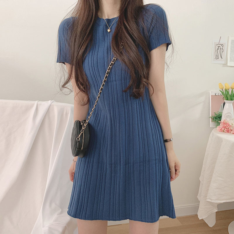 | nameOriginal | South Korea Chic Summer Gentle Elegant Round Neck Pit Slimming Ice Silk Thin Short-sleeved Hip Knitted dress Women |