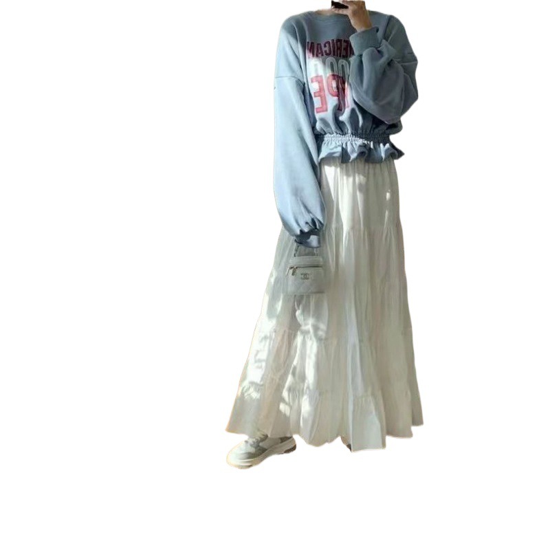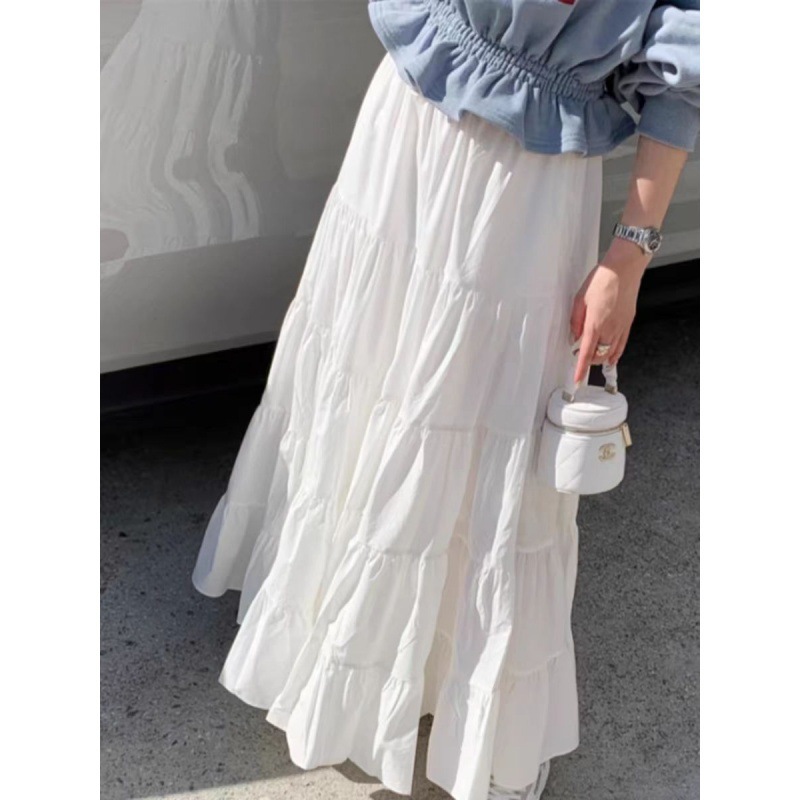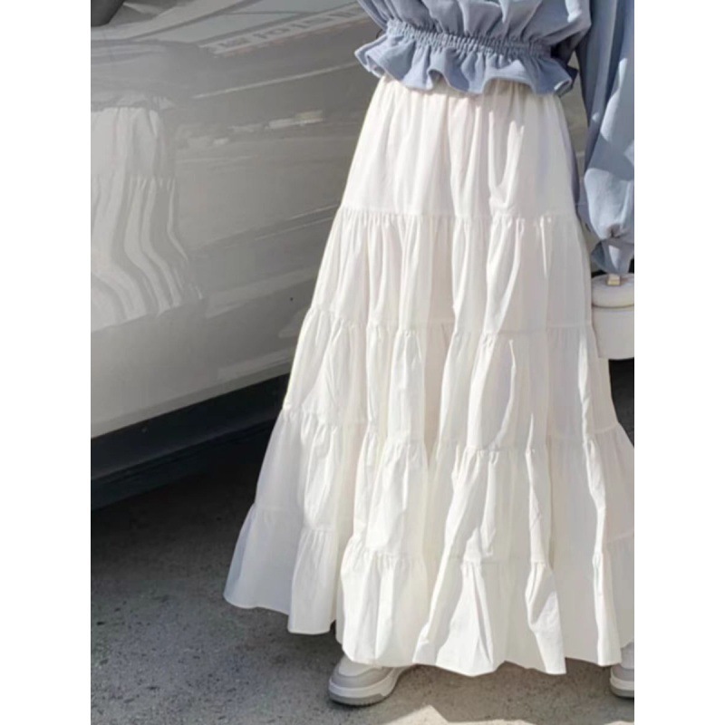 South Korea Chic Summer Retro Fashion Casual Simple All-match High Waist Cake Skirt Large Skirt Skirt Women’s Long Skirt