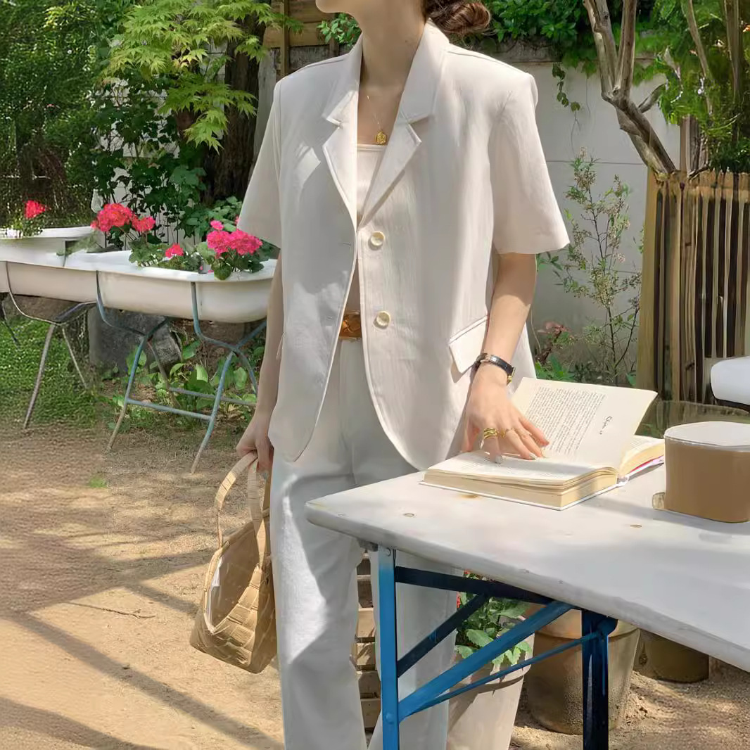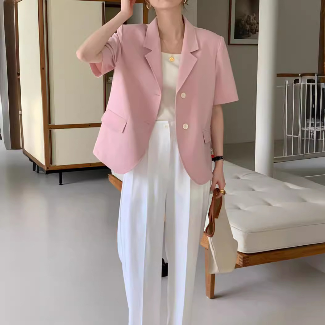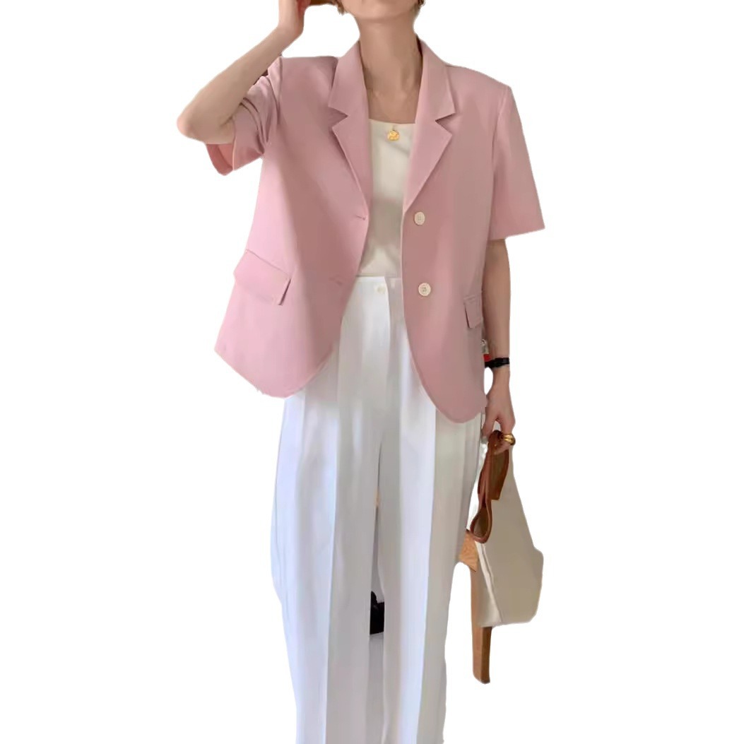 | nameOriginal | South Korea chic2024 Summer New Elegant Suit Collar Loose Casual Single-breasted Solid Color Short-sleeved Suit Jacket |