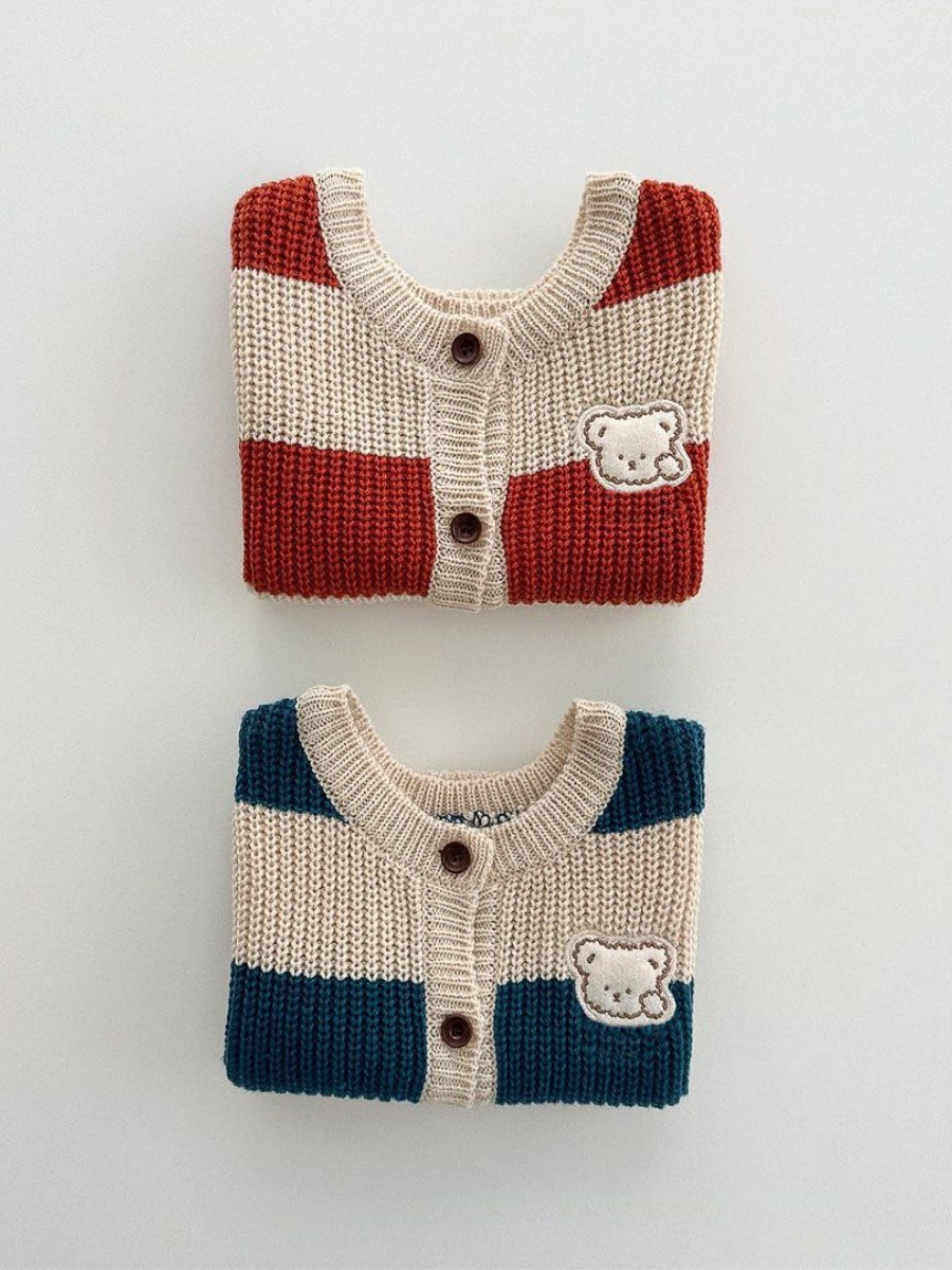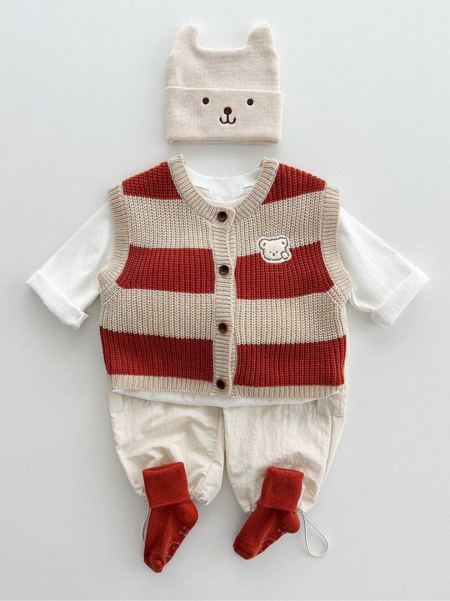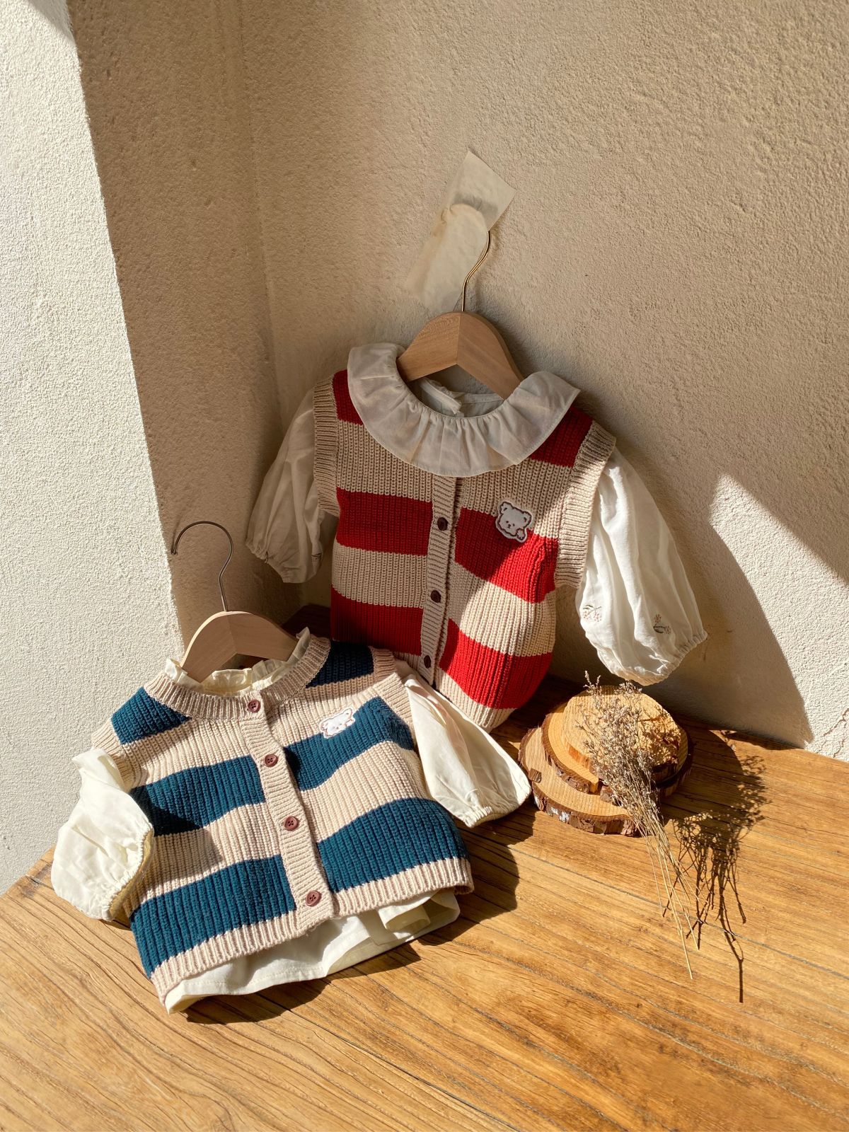 | nameOriginal | South Korea children's clothing baby spring and autumn fashion striped bear patch sweater vest baby boys and girls baby sweater cardigan |