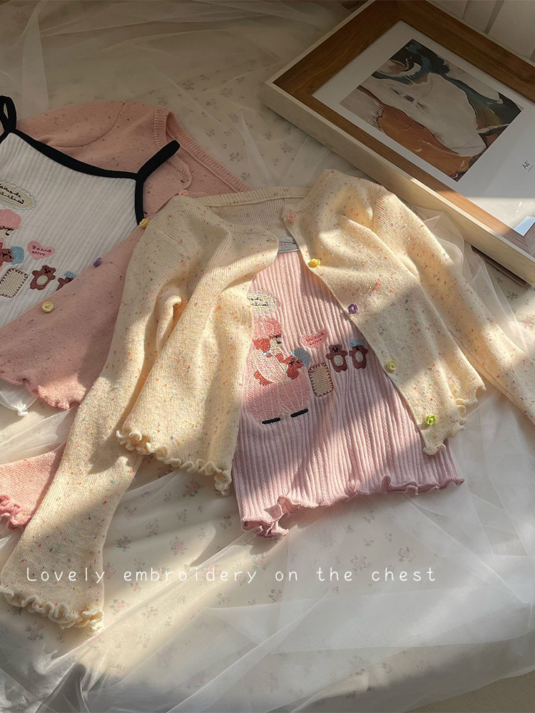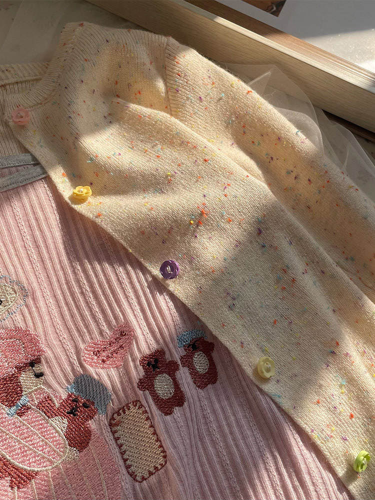 | nameOriginal | South Korea children's clothing girls 2024 spring fashion new little girl knitted cardigan with suspender top sweet and cute |